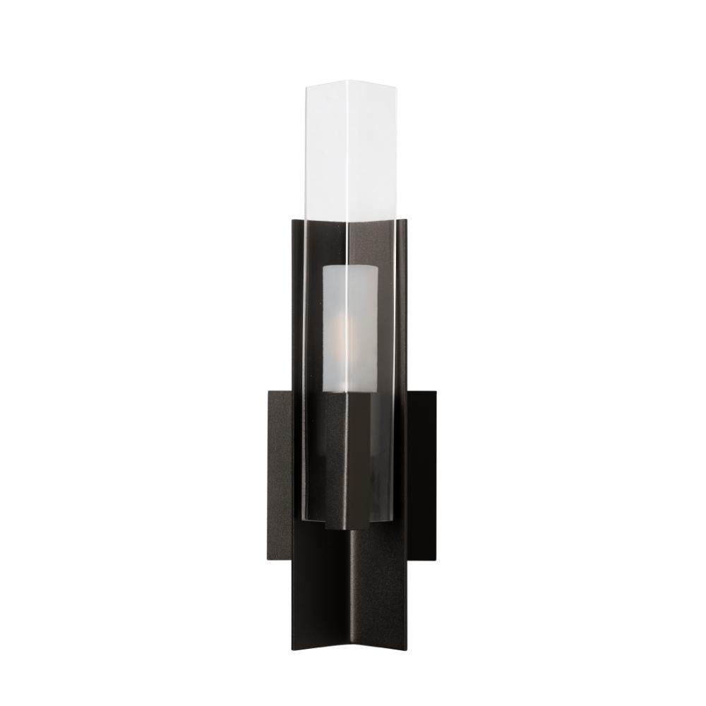 A classic design with a contemporary feel, two right angles that embrace to shield the light within, the Summit Sconce features steel that is bent to 90ΒΊ that holds a glass element that is shaped to the same angle. A frosted cylinder of light is centered between the two, creating a stunning effect.