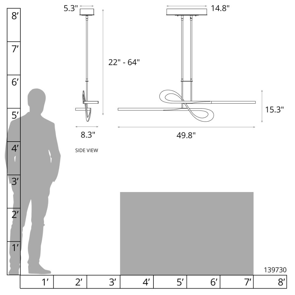 Adjustable height LED linear pendant.- Sloped Ceiling: Adaptable one way to 45 degrees