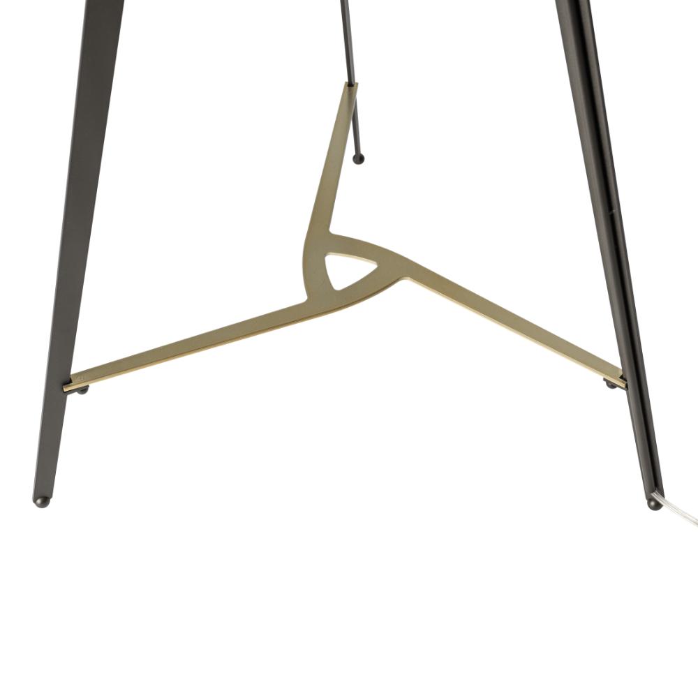 The Tryst Floor Lamp—a mid-century modern design with a twist. Handmade by Vermont artisans, this tall tripod lamp is the perfect statement piece for any room. The leg brace detail, in your choice of accent finish, adds a touch of sophistication. The Tryst is crafted of hand-forged steel complemented with a graceful fabric shade.
