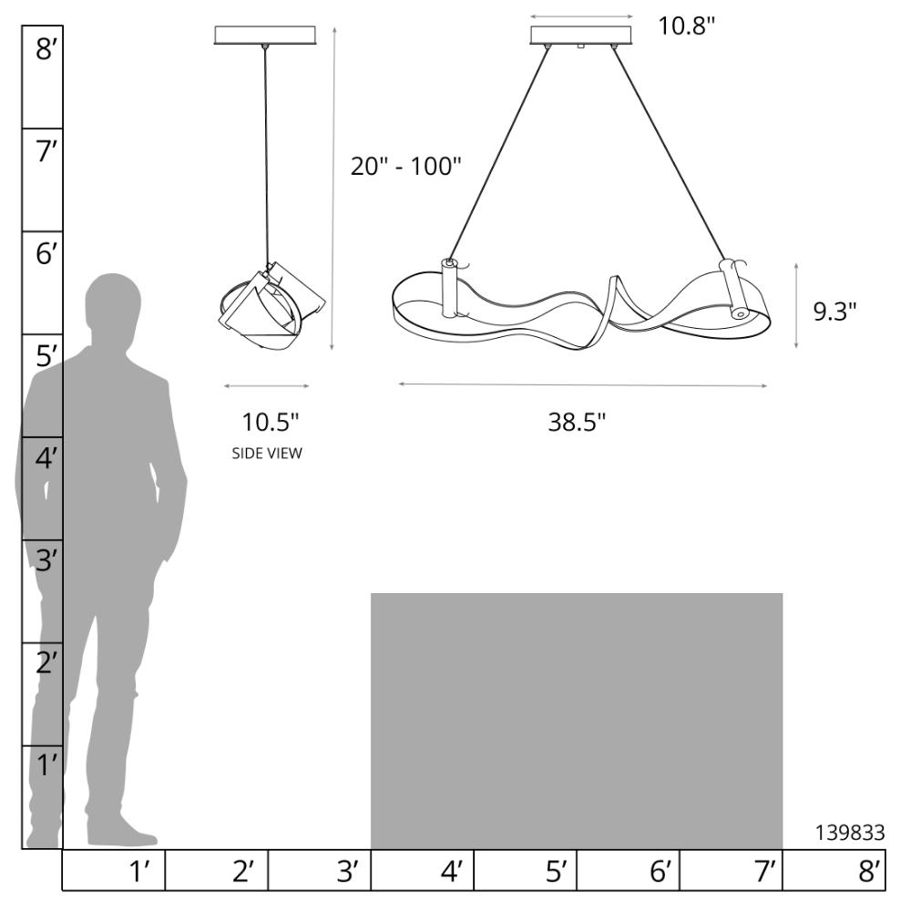 Adjustable cable-hung LED pendant with finish and a hand-bent acrylic light guide.- Sloped Ceiling: Adaptable to 45 degrees (cable)