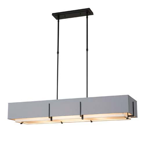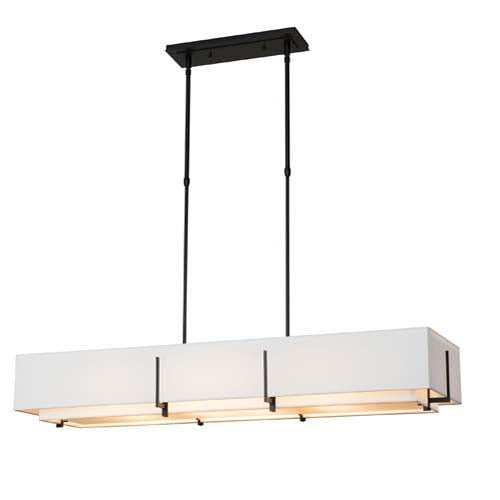 Adjustable linear pendant with double shades. Includes bottom diffuser.