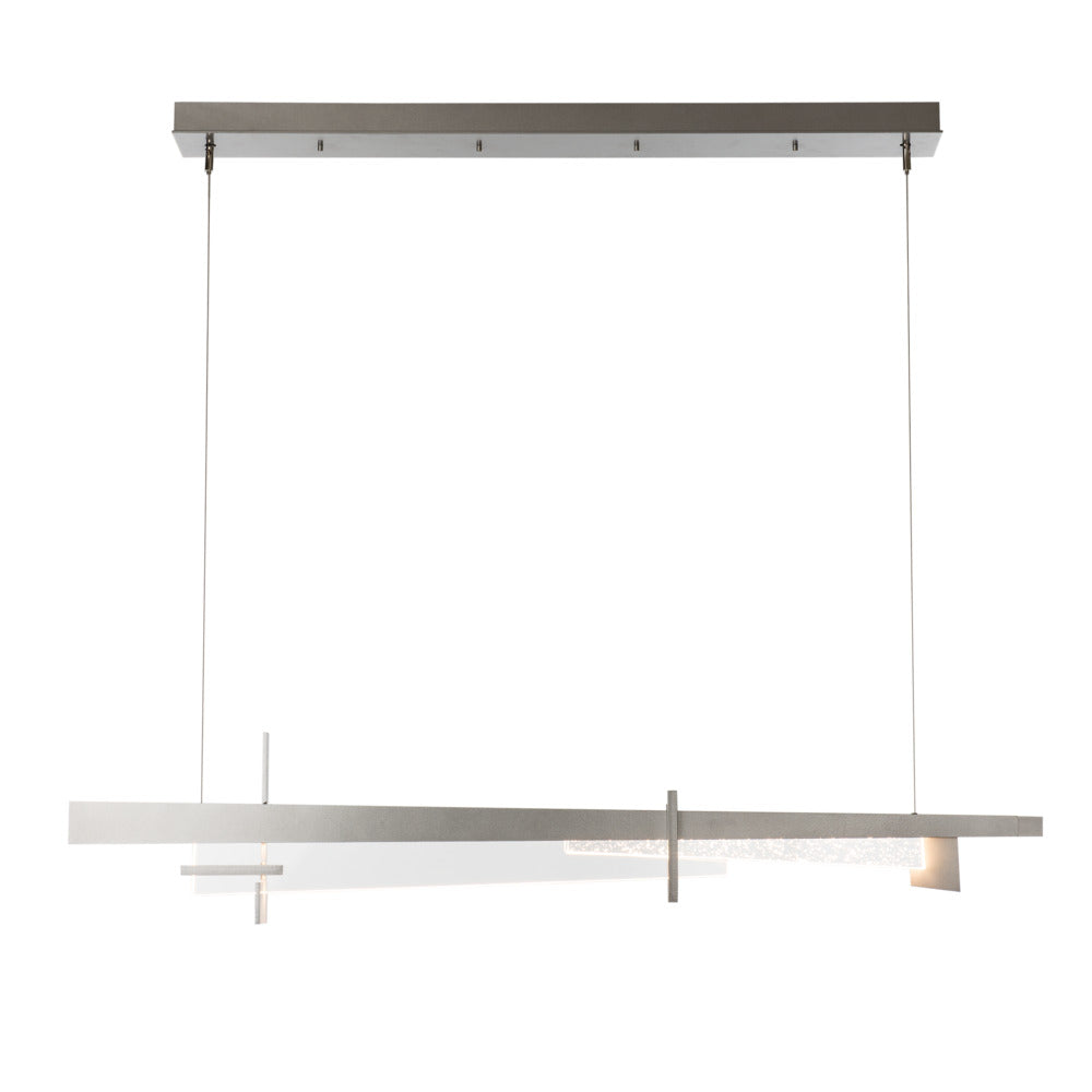 Adjustable cable-hung linear suspension LED pendant with finish options.