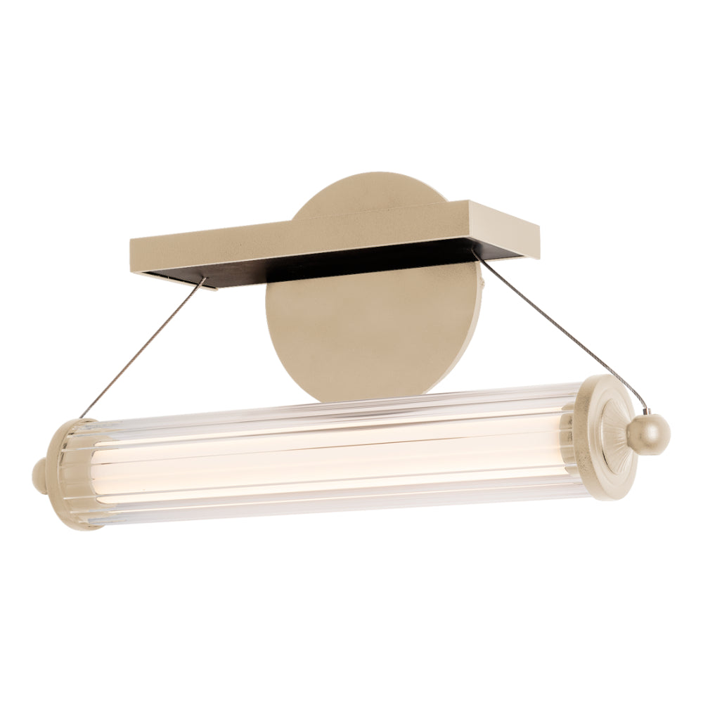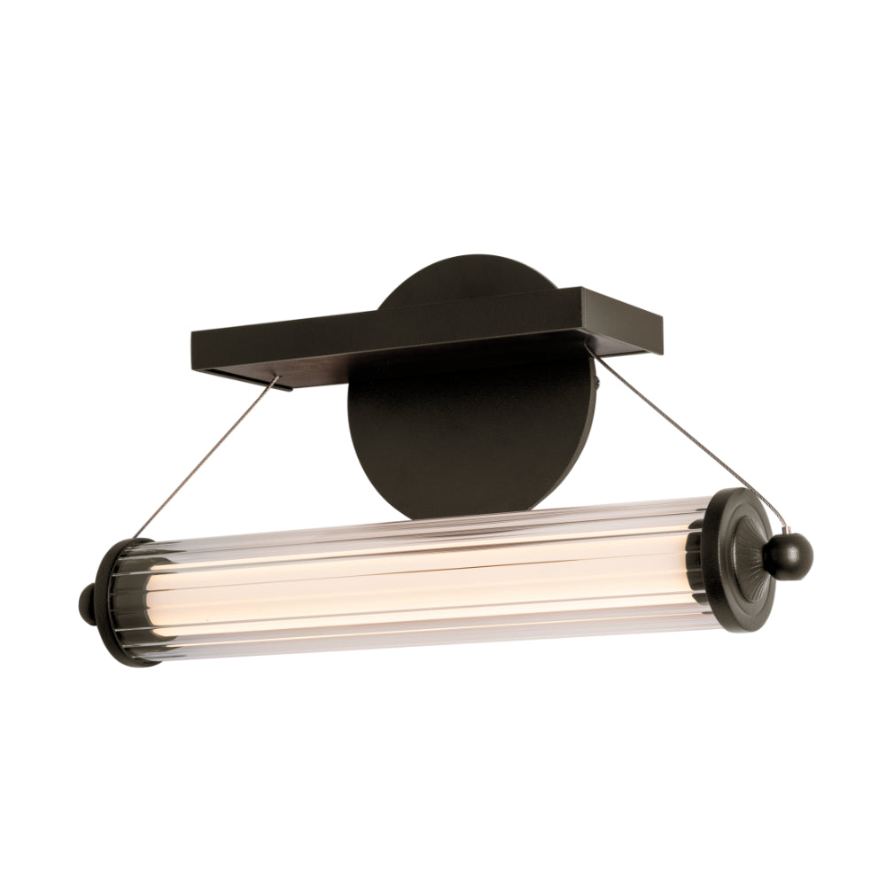 Direct wire LED wall sconce with ribbed clear glass and a stained black wood accent. Libra is height adjustable with an overall height range of 14" to 70". ADA compliant.