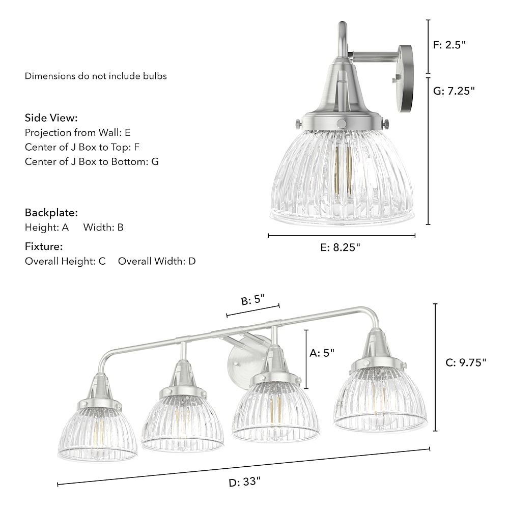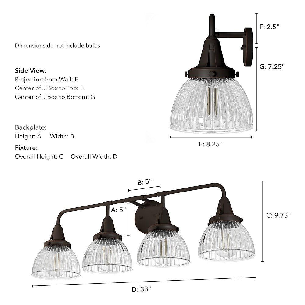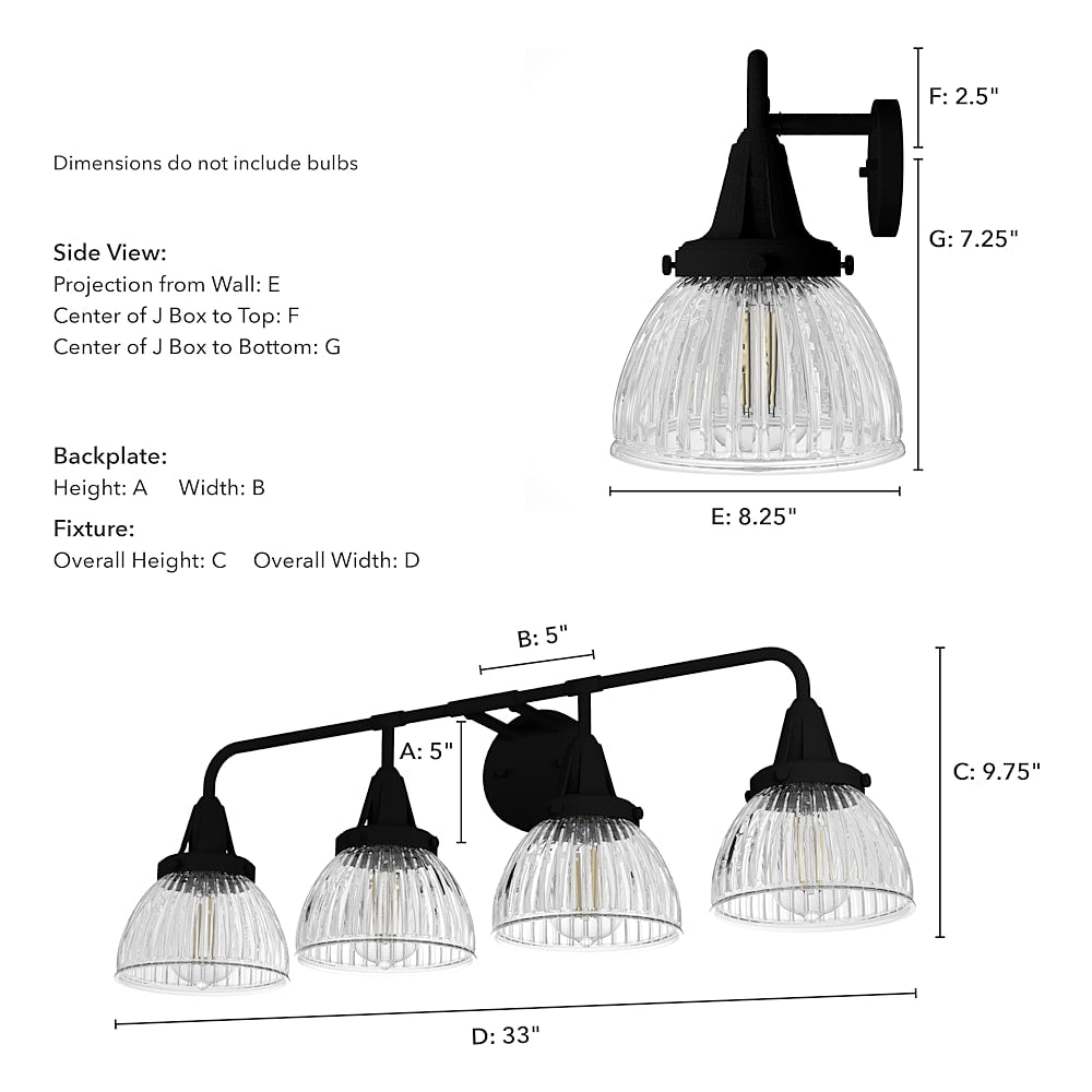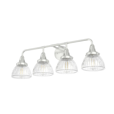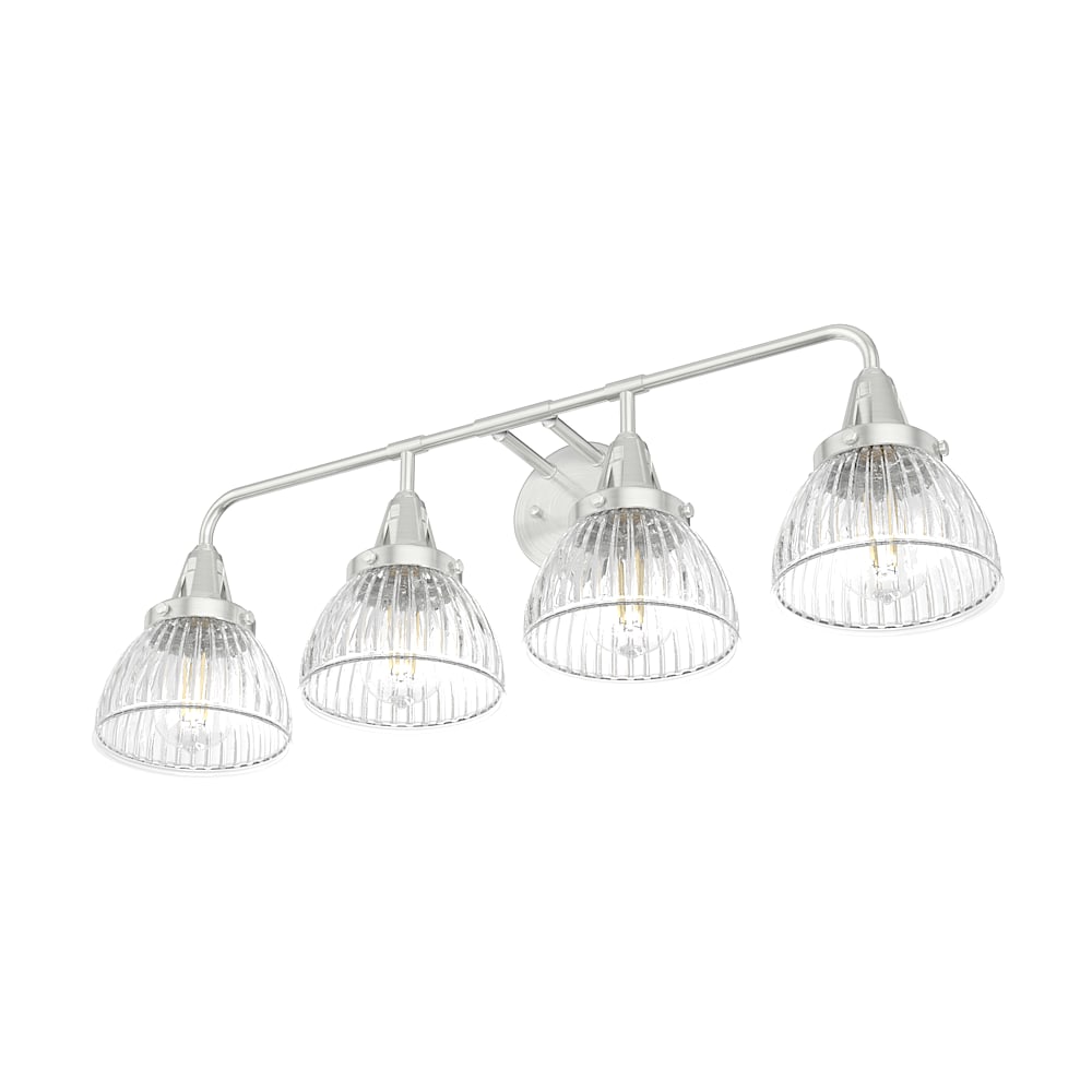 Strong details and with an elegant twist. The Cypress Grove 4 light vanity light pairs industrial form with intricate fluted glass to create something unforgettable. This indoor damp-rated fixture makes a statement in transitional and modern bathrooms. Carry this industrial theme throughout your space by pairing this vanity light with other fixtures fro the Cypress Grove collection.