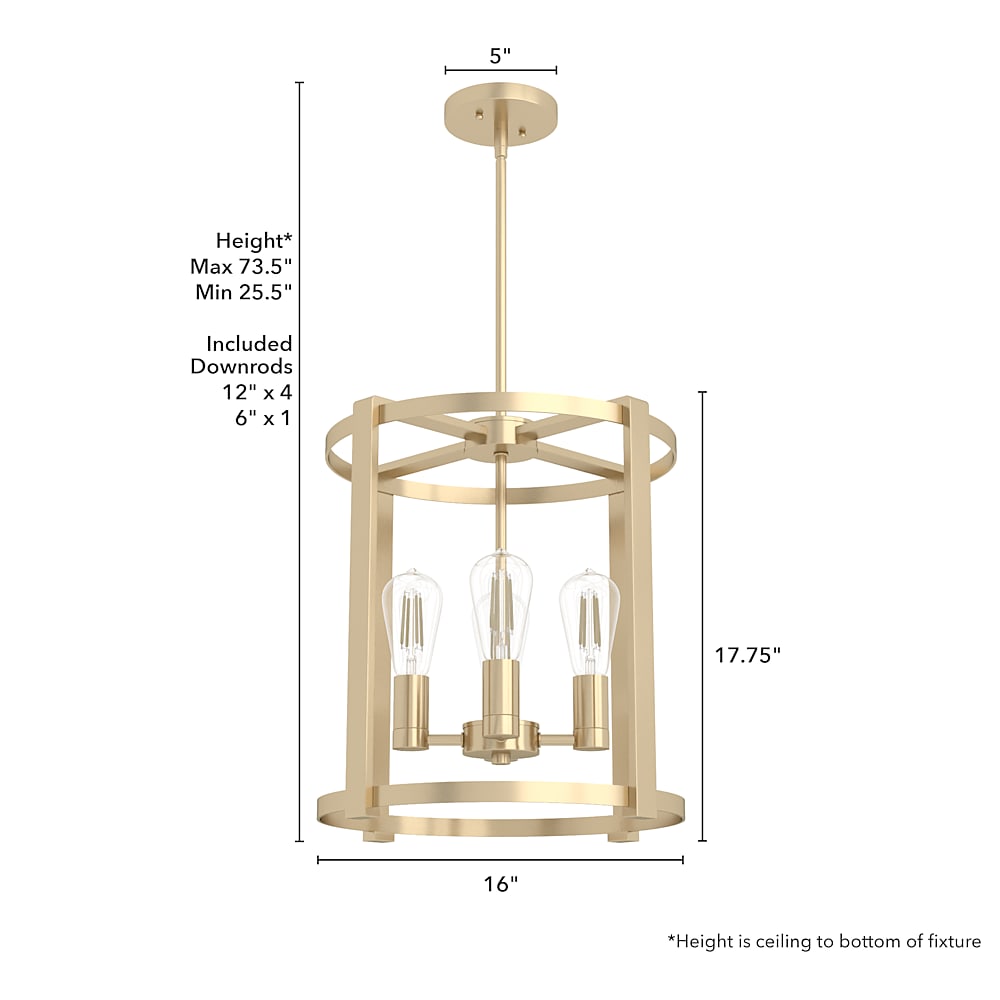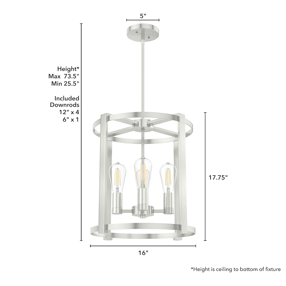 - CUSTOMIZABLE HANGING OPTIONS: With the minimum required downrod, the hanging length is 25.5 inches. When using all of the included downrod, the maximum hanging length is 73.5 inches.