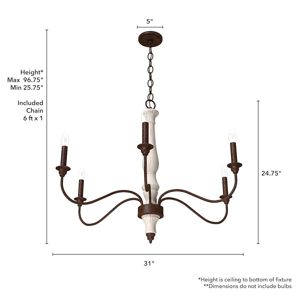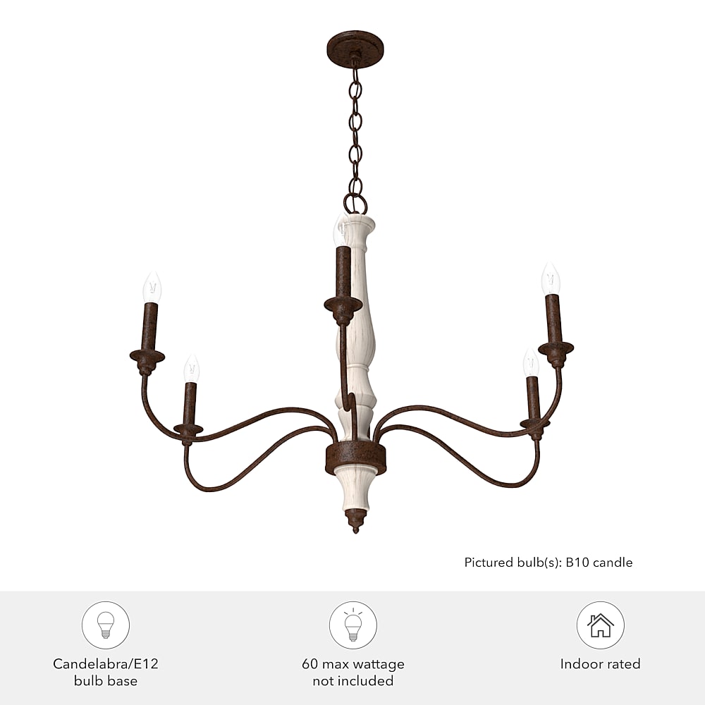 Hunter Lighting 19-HL24 Teren 6 Light Chandelier in Distressed White