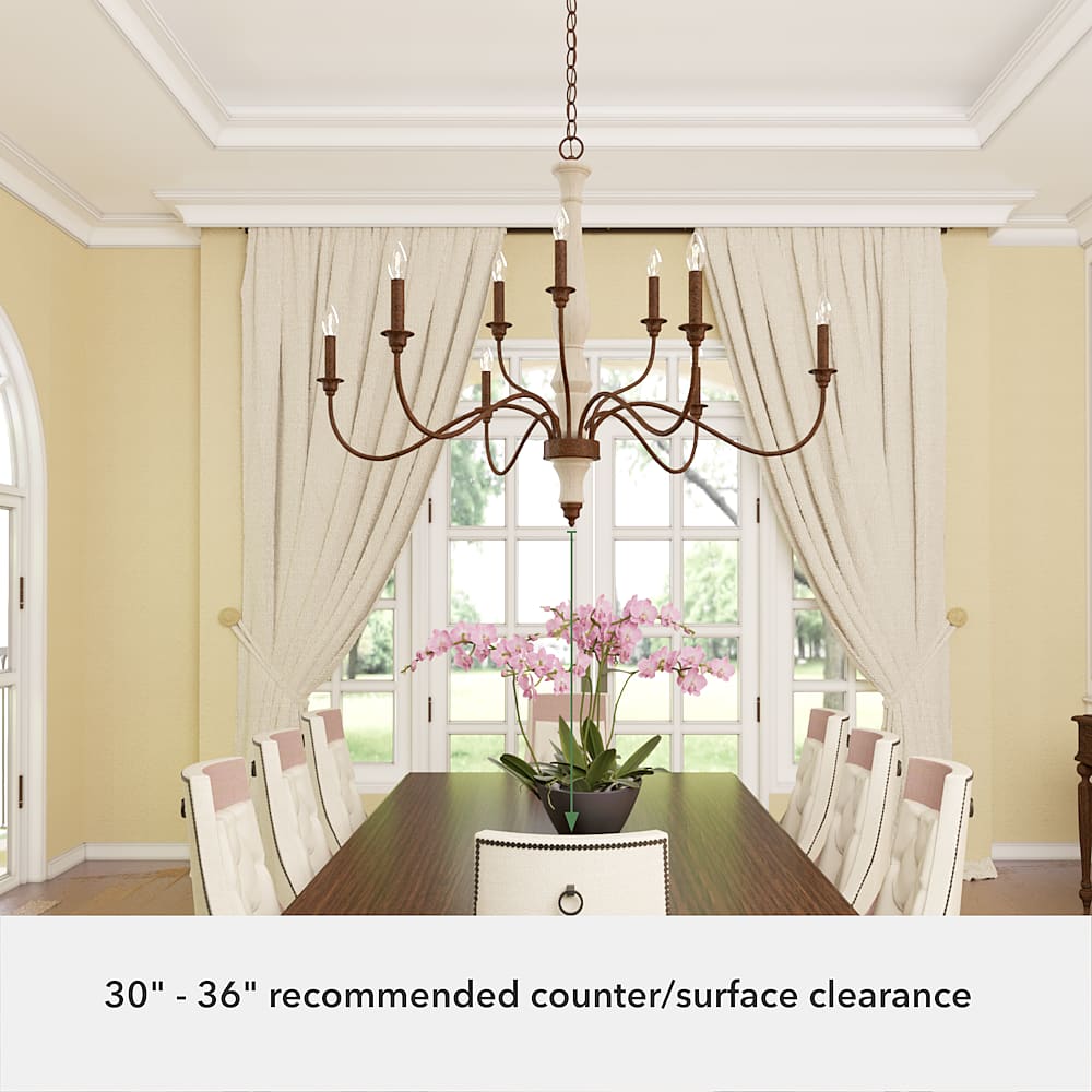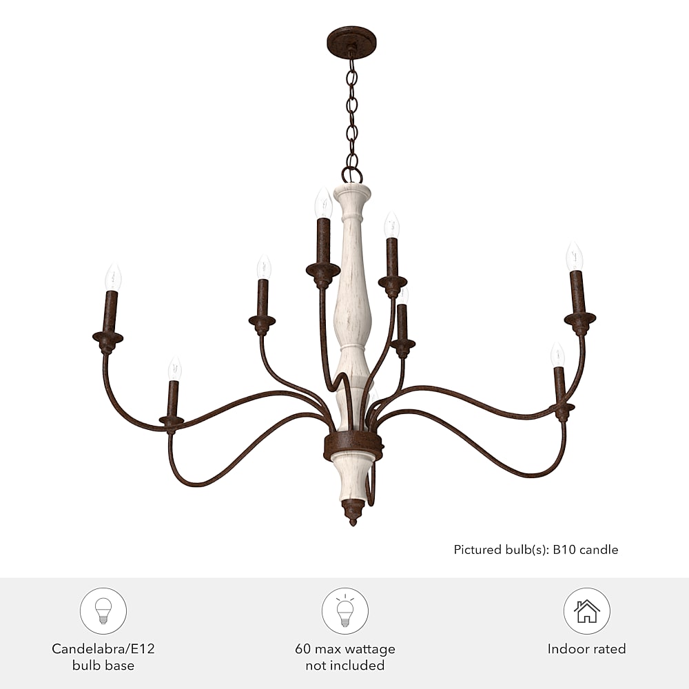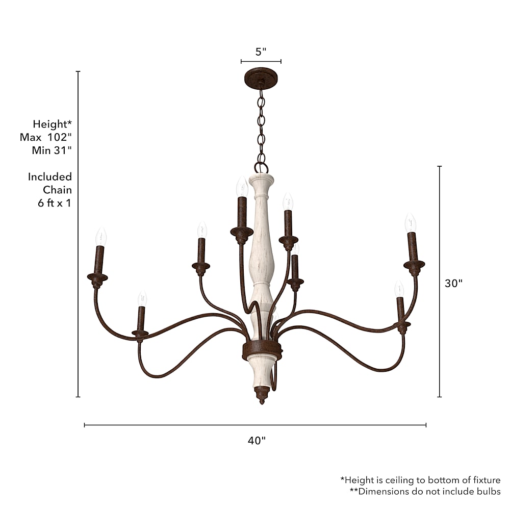 Dramatic without being overdone. The Teren French country inspired tiered chandelier layers illumination and a rustic yet refined design. Bring casual elegance to your space with its distressed, wood-inspired finishes and spindle chandelier form. Design a room for your romantic side with the Teren 9-light chandelier.