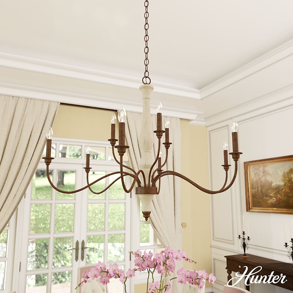 Hunter Lighting 19-HL25 Teren 9 Light 2-Tier Chandelier in Distressed White