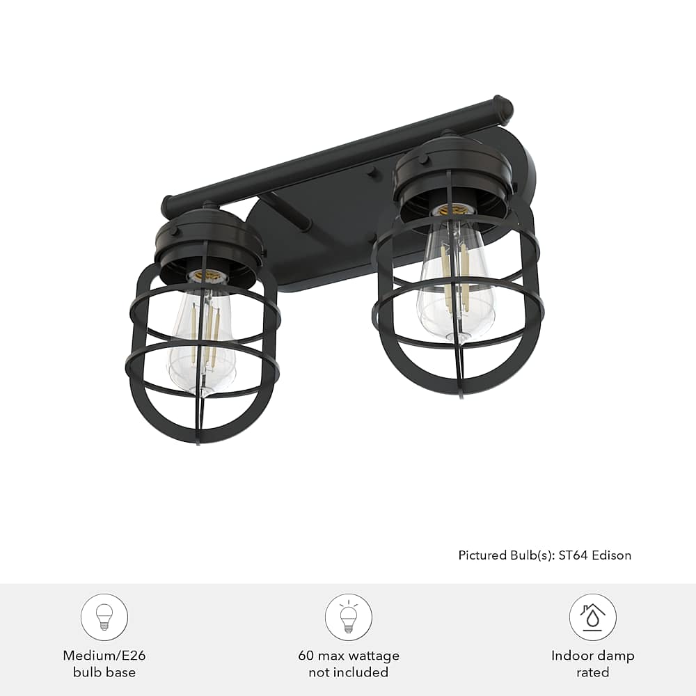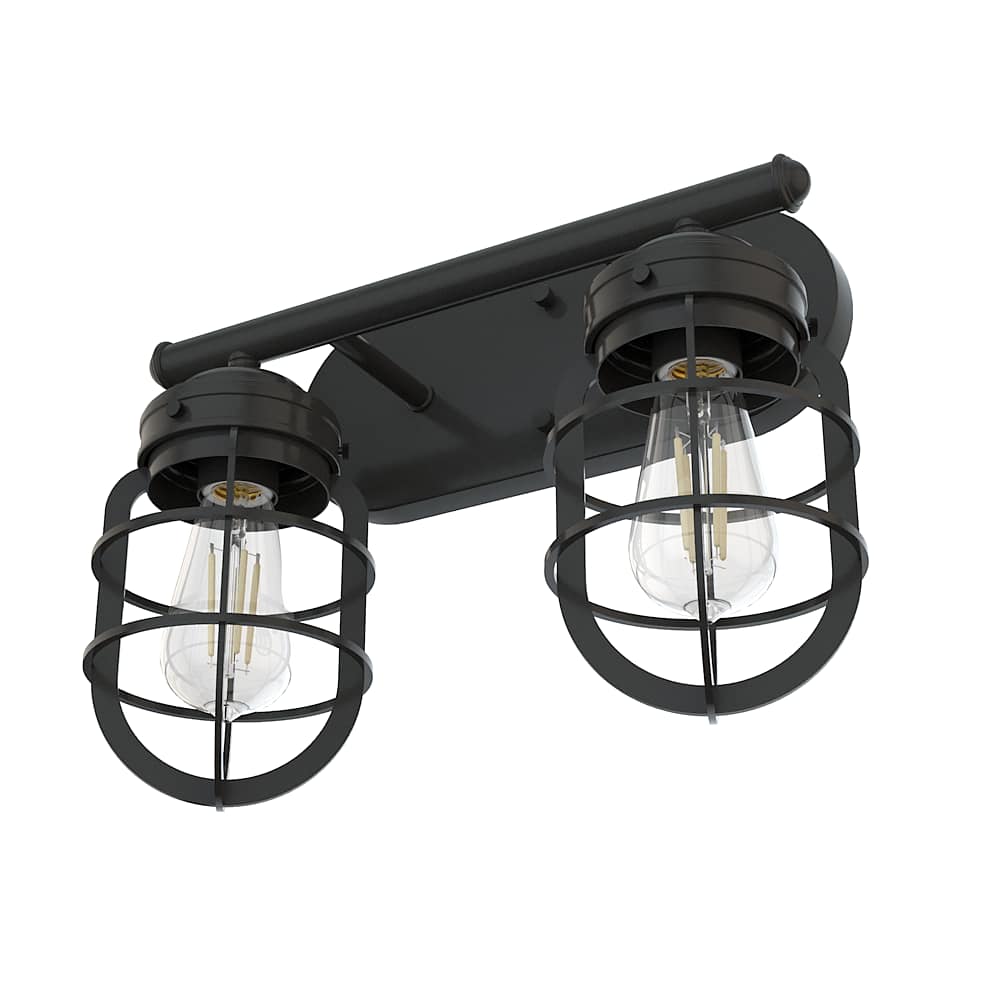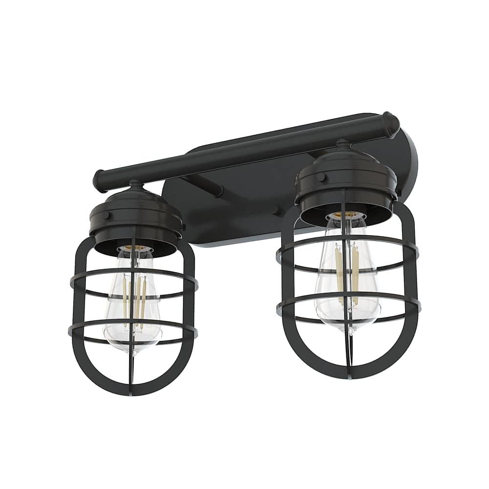 Rustic influences meet modern design. The Starklake 2-light vanity fixture is the latest addition to our popular Starklake collection. This vanity light with caged shades enhances the look of modern industrial and farmhouse style bathrooms. We love how one looks in small bathrooms and two for double vanity lighting.