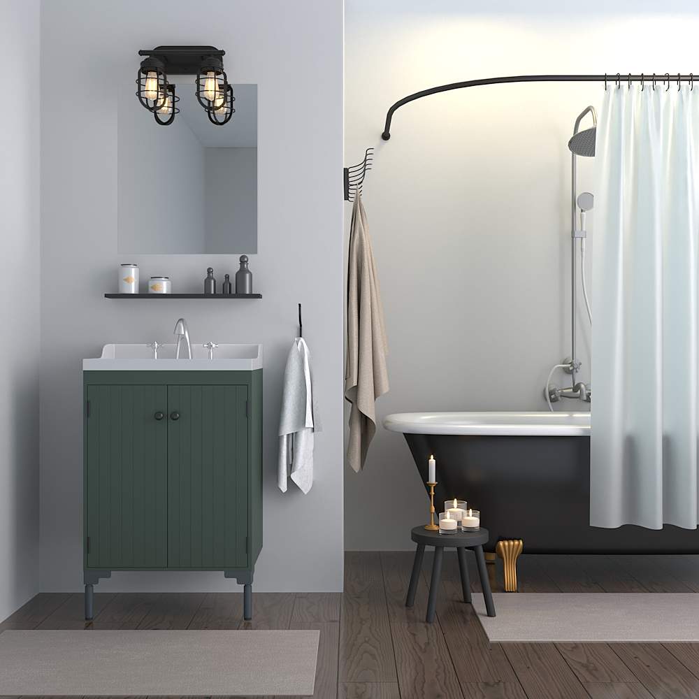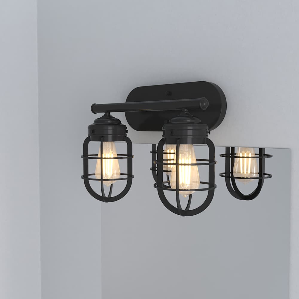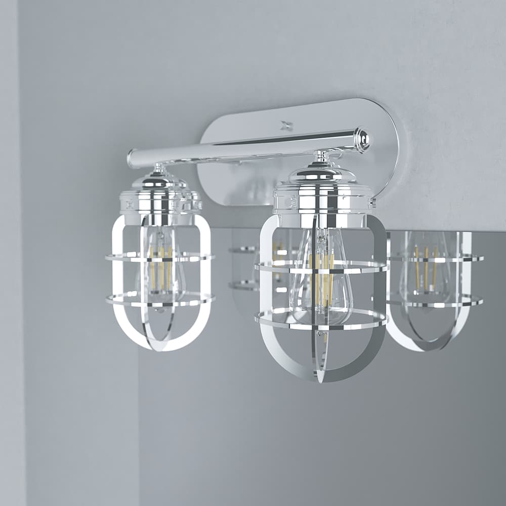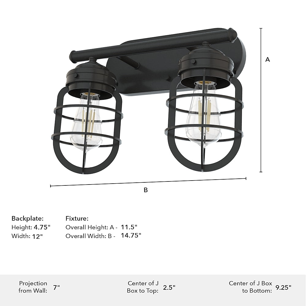 Rustic influences meet modern design. The Starklake 2-light vanity fixture is the latest addition to our popular Starklake collection. This vanity light with caged shades enhances the look of modern industrial and farmhouse style bathrooms. We love how one looks in small bathrooms and two for double vanity lighting.