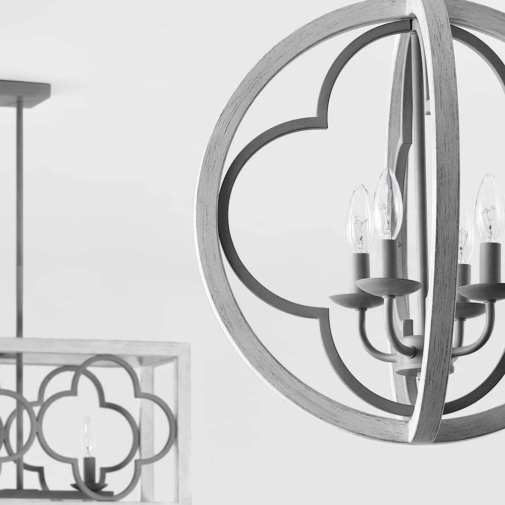 With a beautiful quatrefoil design, hang multiple 19-inch Gablecrest pendant lights above the dining room table for a stunning, unique look. The Victorian and European design influences in the Gablecrest come together for a fresh look as kitchen island lighting in farmhouse or French country inspired spaces.