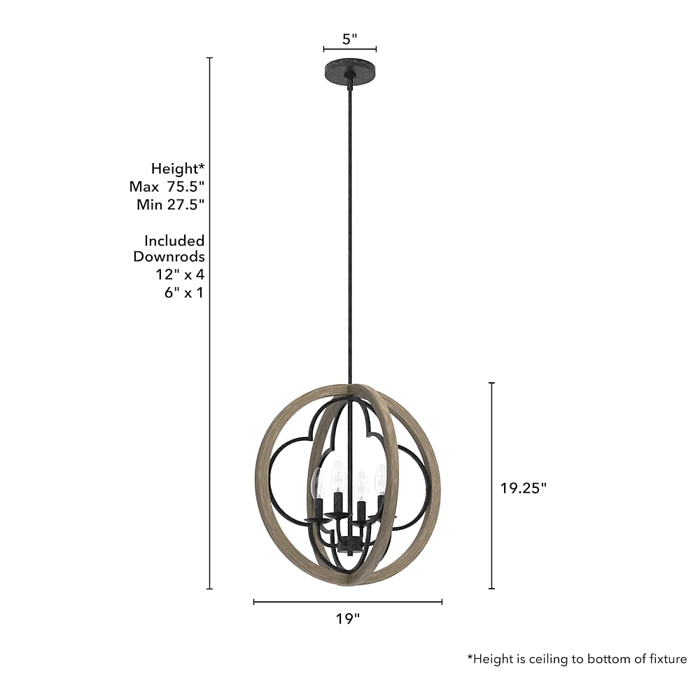 - CUSTOMIZABLE HANGING OPTIONS: With the minimum required downrod, the hanging length is 27.75 inches. When using all of the included downrod, the maximum hanging length is 75.75 inches.