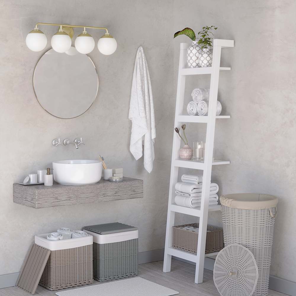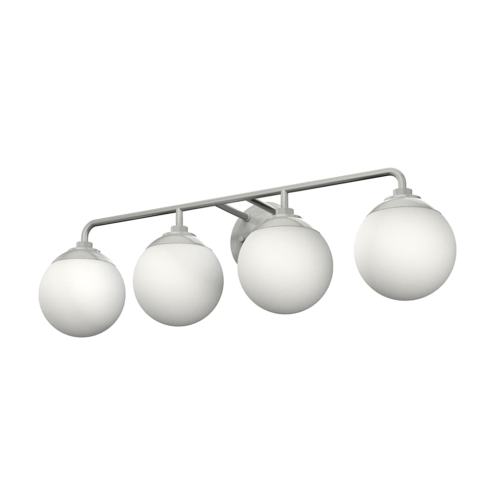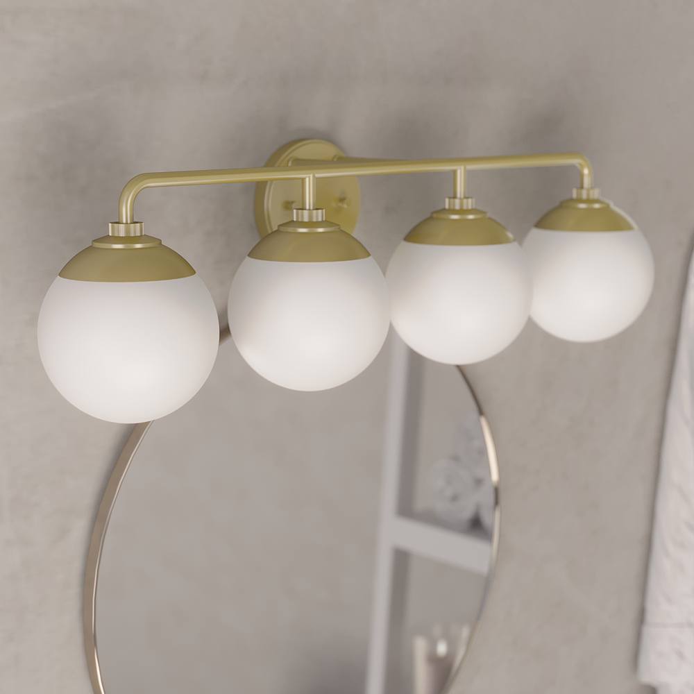 Lighting to make you feel like a movie star – no filter needed. The Hepburn modern 4-light vanity light blends the grandness of 1920 theaters with the retro, geometric forms of mid-century modern design. The cased white glass diffuses the light just enough to create the perfect glow to illuminate your bathrooms.