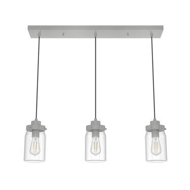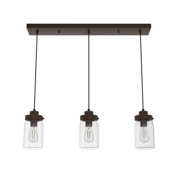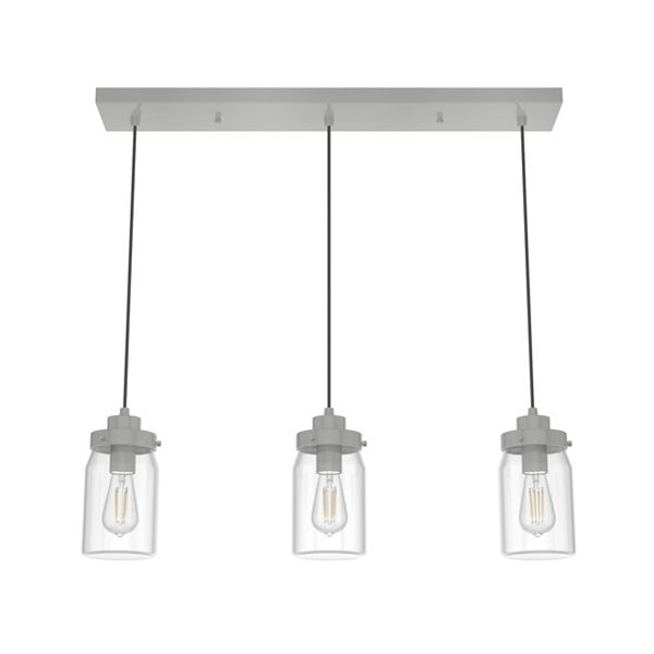 Subtle rustic detailing perfect for farmhouse spaces. Ball jar inspired glass shades on the Devon Park 3-light linear cluster light complete the look of coastal and farmhouse style spaces. Tailor the look for your space by varying the height of the mini pendant lights to fit your needs and style.
