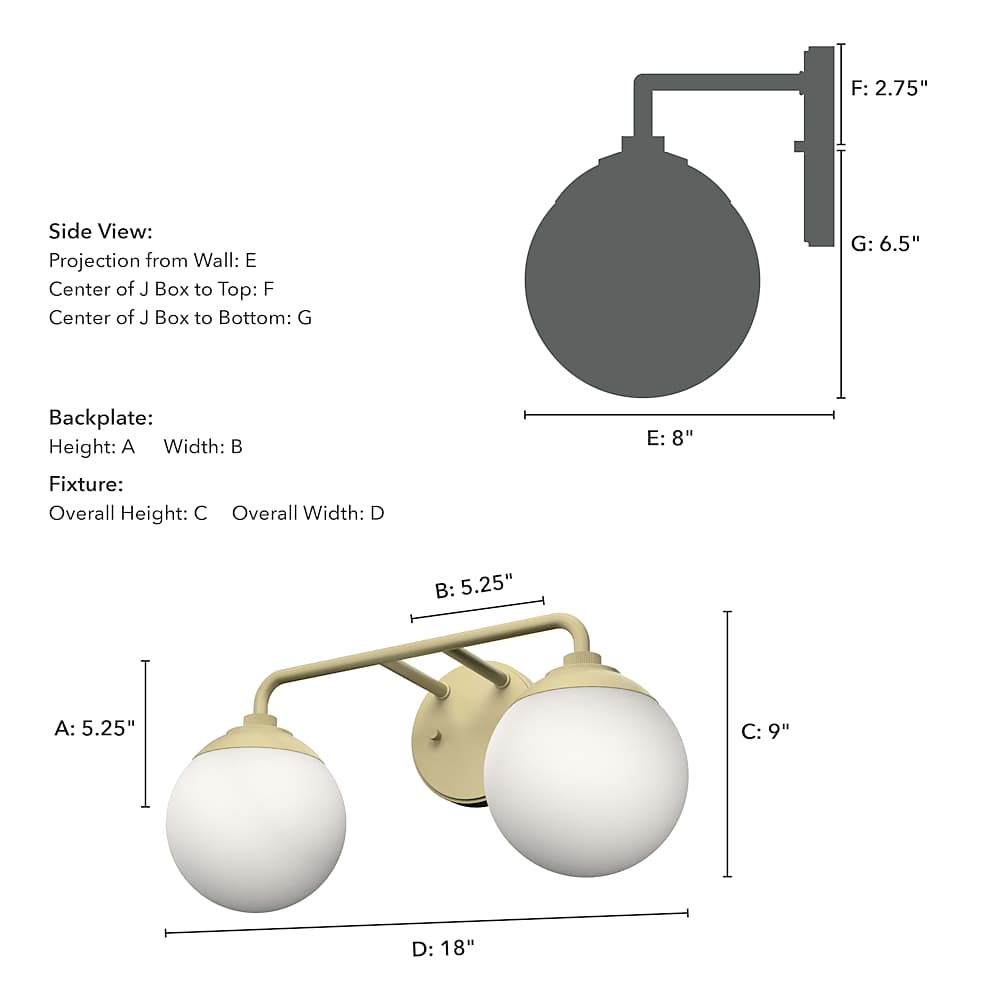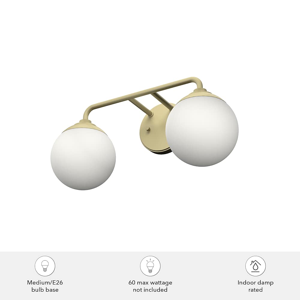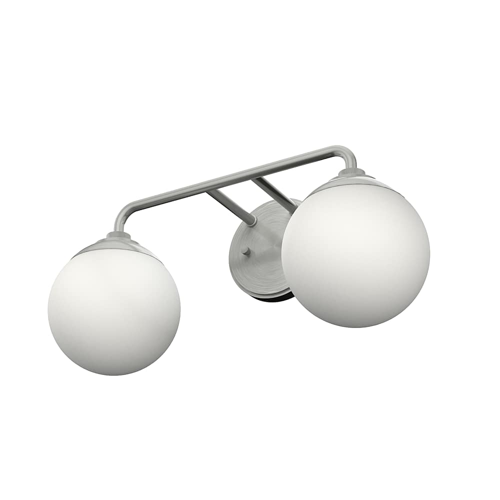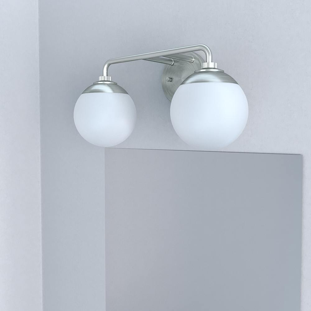Big style for small spaces. The Hepburn modern 2-light vanity light blends the grandness of 1920 theaters with the retro, geometric forms of mid-century modern design. A simple design with beautiful finishes and a cased white glass – the simplest things can make the biggest impact.