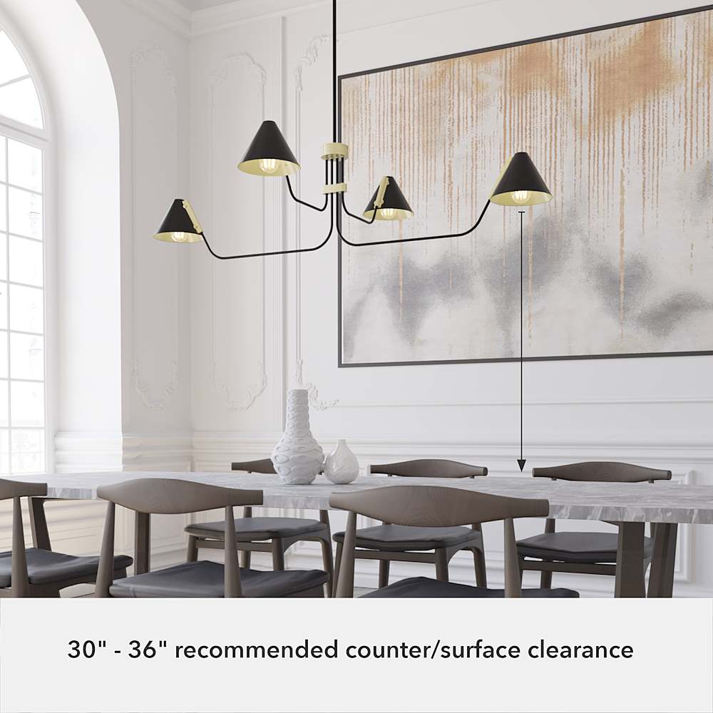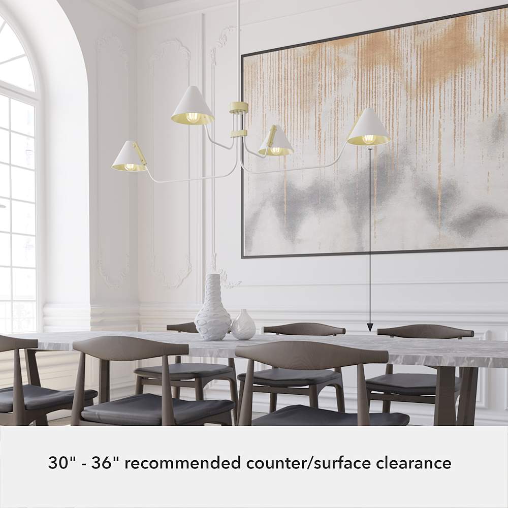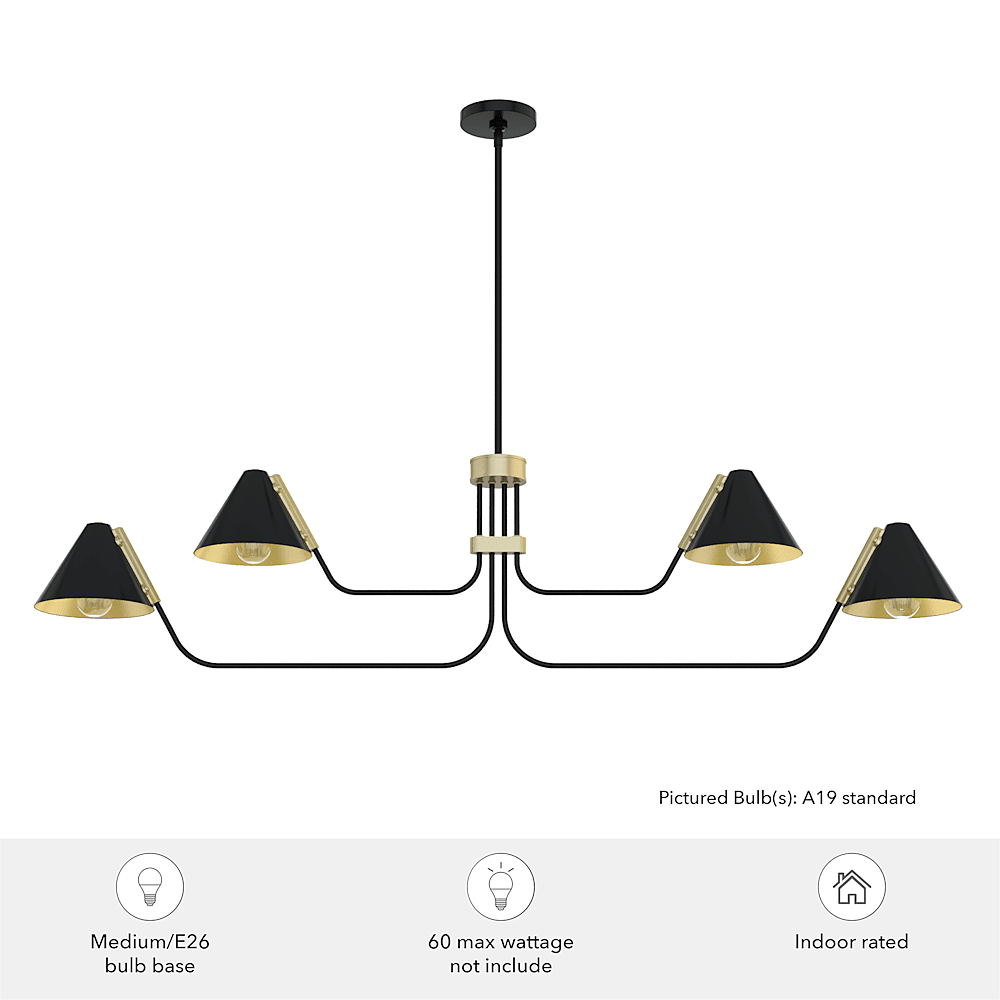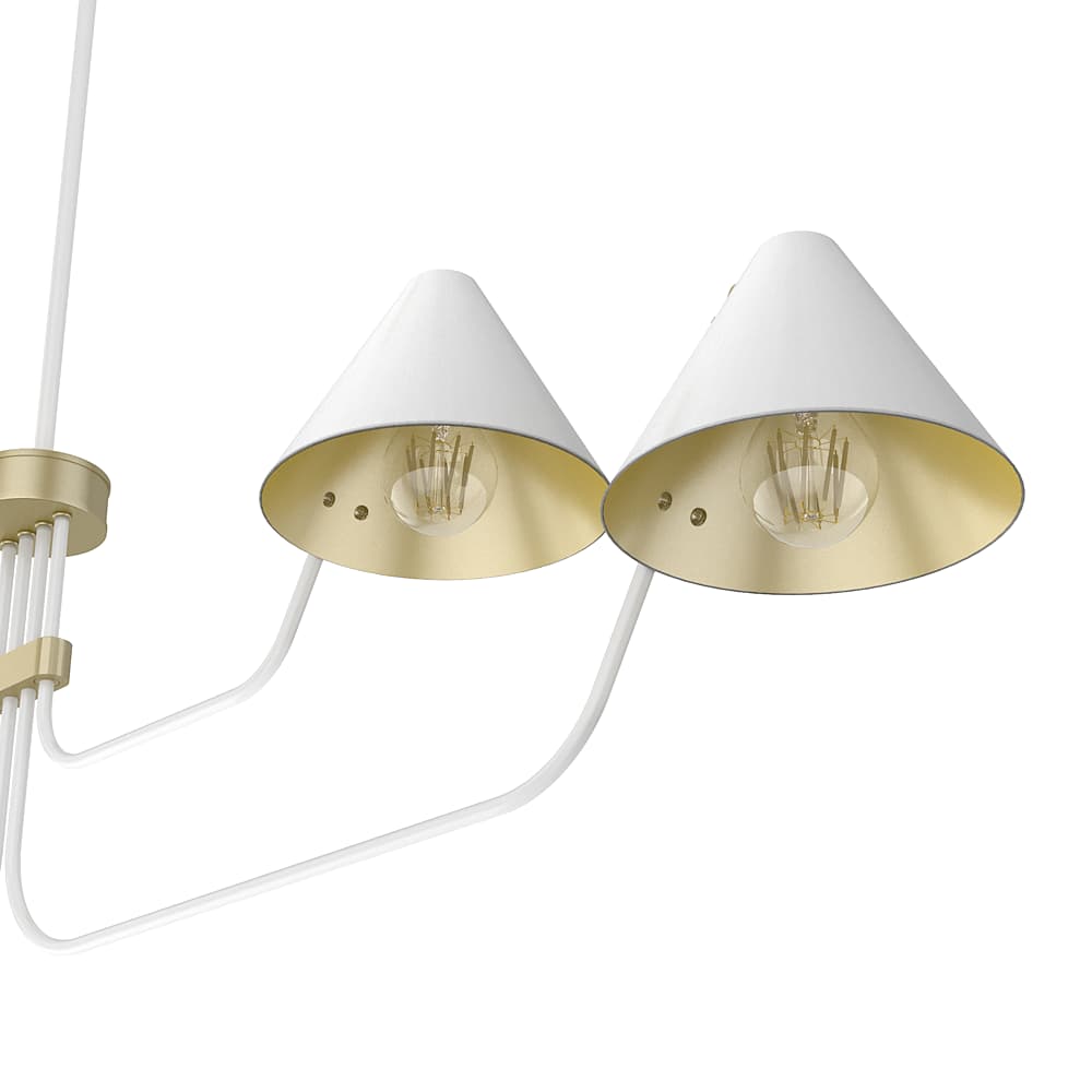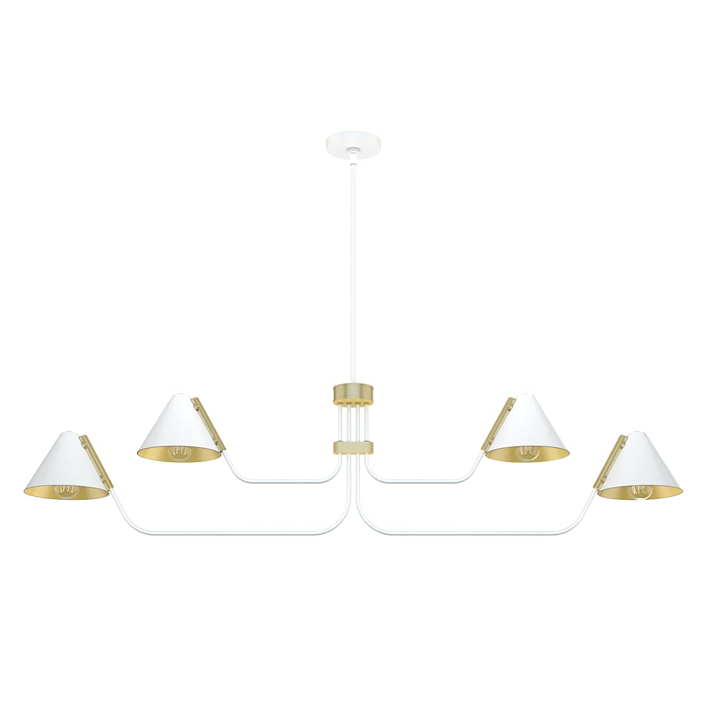 The perfect balance of minimalist and lustrous. The pop of metallic in the Grove Isle's light shades is the perfect complement to the linear chandelier's classic finishes. This modern minimalist chandelier's mid-century inspired light shades are connected by slender arms for a look that's playful and beautiful.