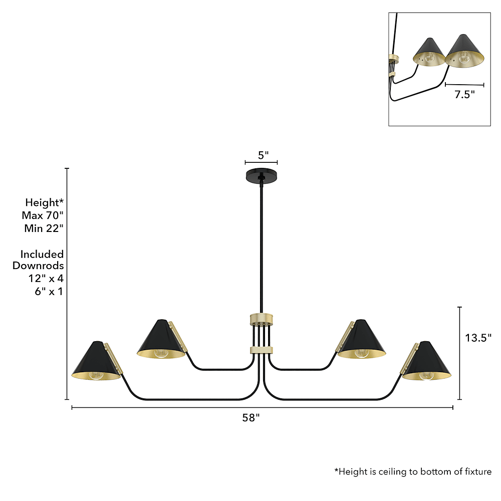 - CUSTOMIZABLE HANGING OPTIONS: With the minimum required downrod, the hanging length is 22 inches. When using all of the included downrod, the maximum hanging length is 70 inches.