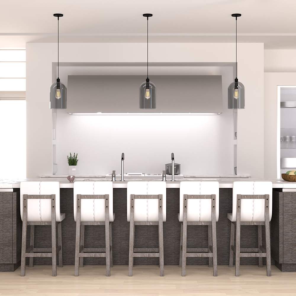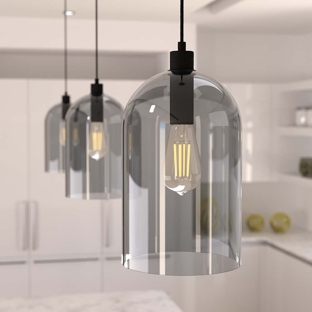 Simple and streamlined, the Lochemeade modern 1-light pendant features clear glass dome shades that leave an impression without being overpowering. The variety of available glass shade finishes – like clear seeded glass and smoked glass – gives this modern pendant light versatility in your space's style.