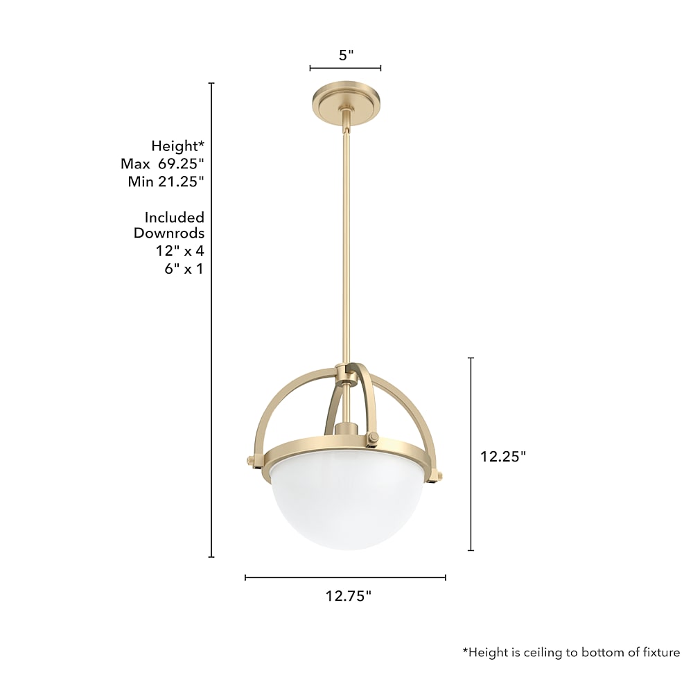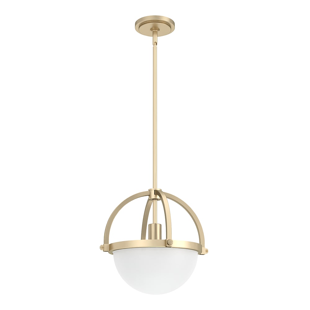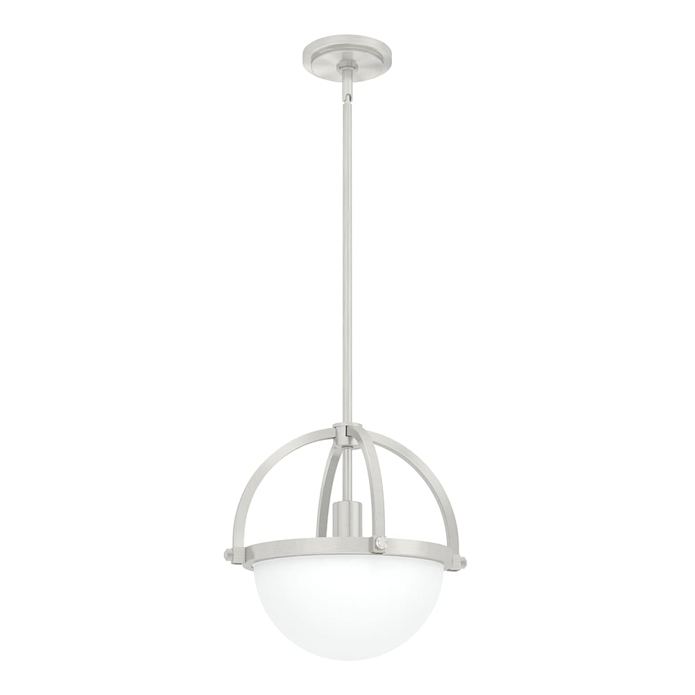 The traditional globe pendant light gets a modern makeover. The 1-light Wedgefield small pendant light is classically proportioned, but we added a twist. The bottom half features cased white glass that beautifully diffuses light while the top half is open and uses decorative arms to artfully embrace the negative space. The result is stately yet simply lovely.