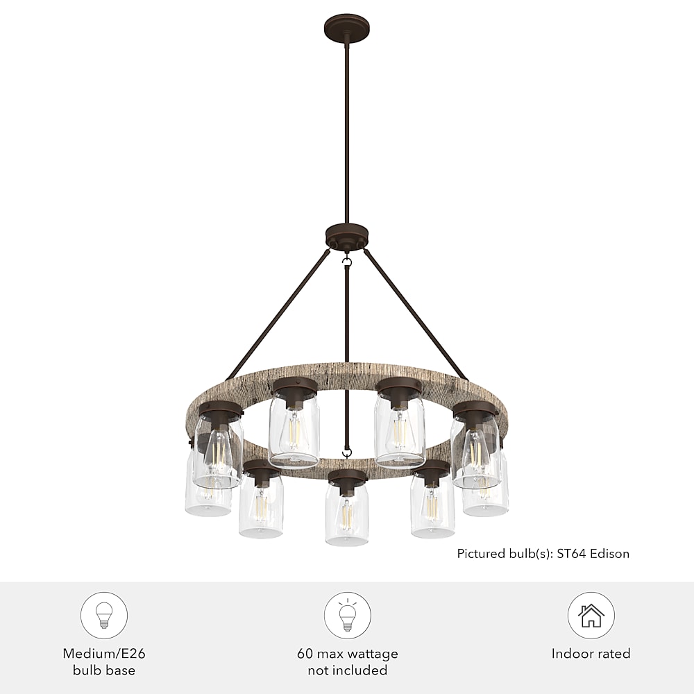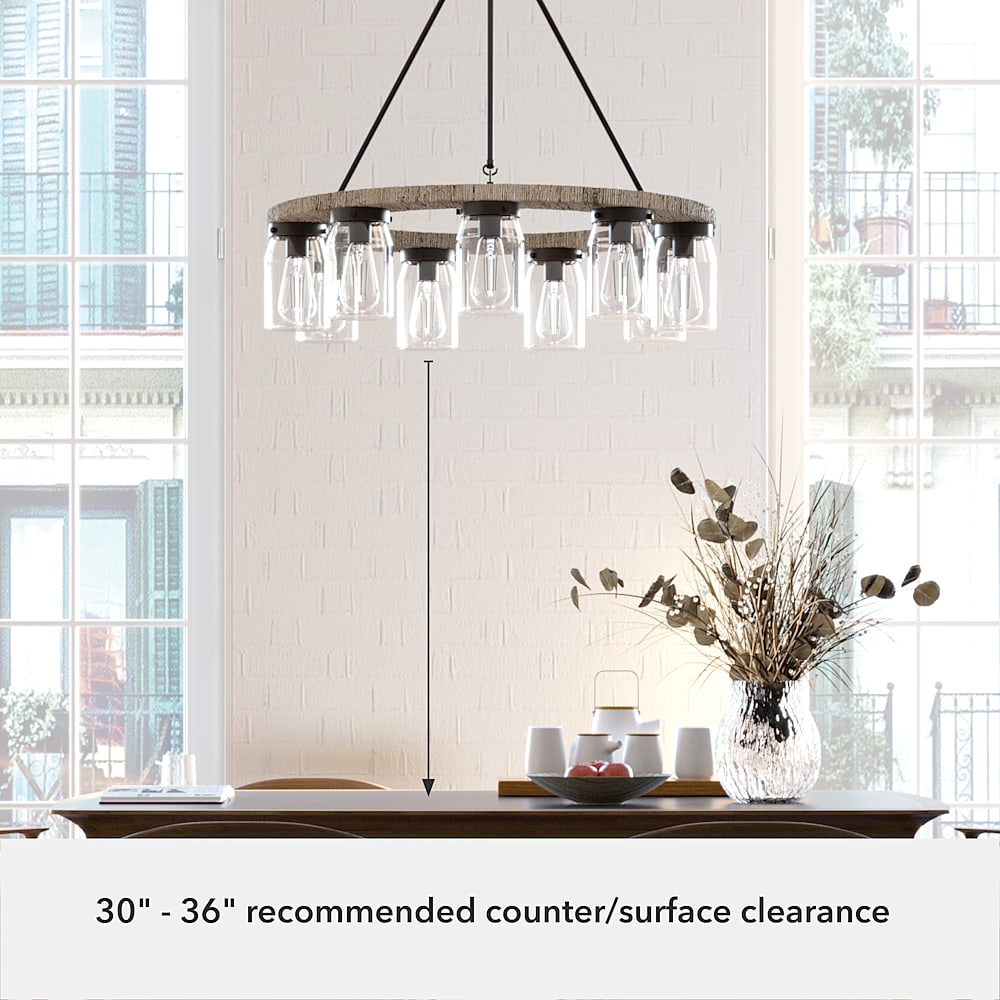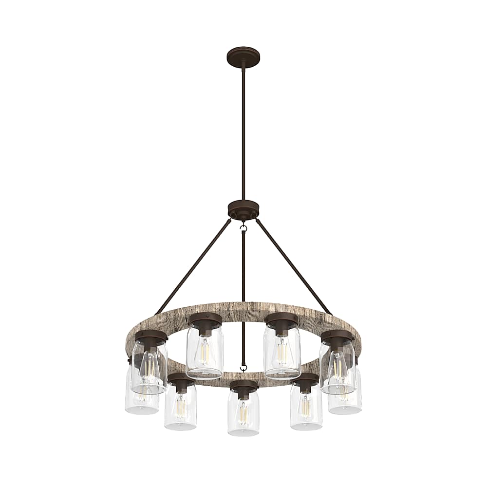 Illuminate your space with this charming chandelier. Reminiscent of a rustic wagon wheel, the Devon Park 9-light round chandelier brings farmhouse spaces to life. This round fixture creates a dimensional look with its distressed finishes and clean, ironwork detailing. Complement the chandelier by layering it with other fixtures from the Devon Park ceiling fan and lighting collections to create a cohesive look in your space.
