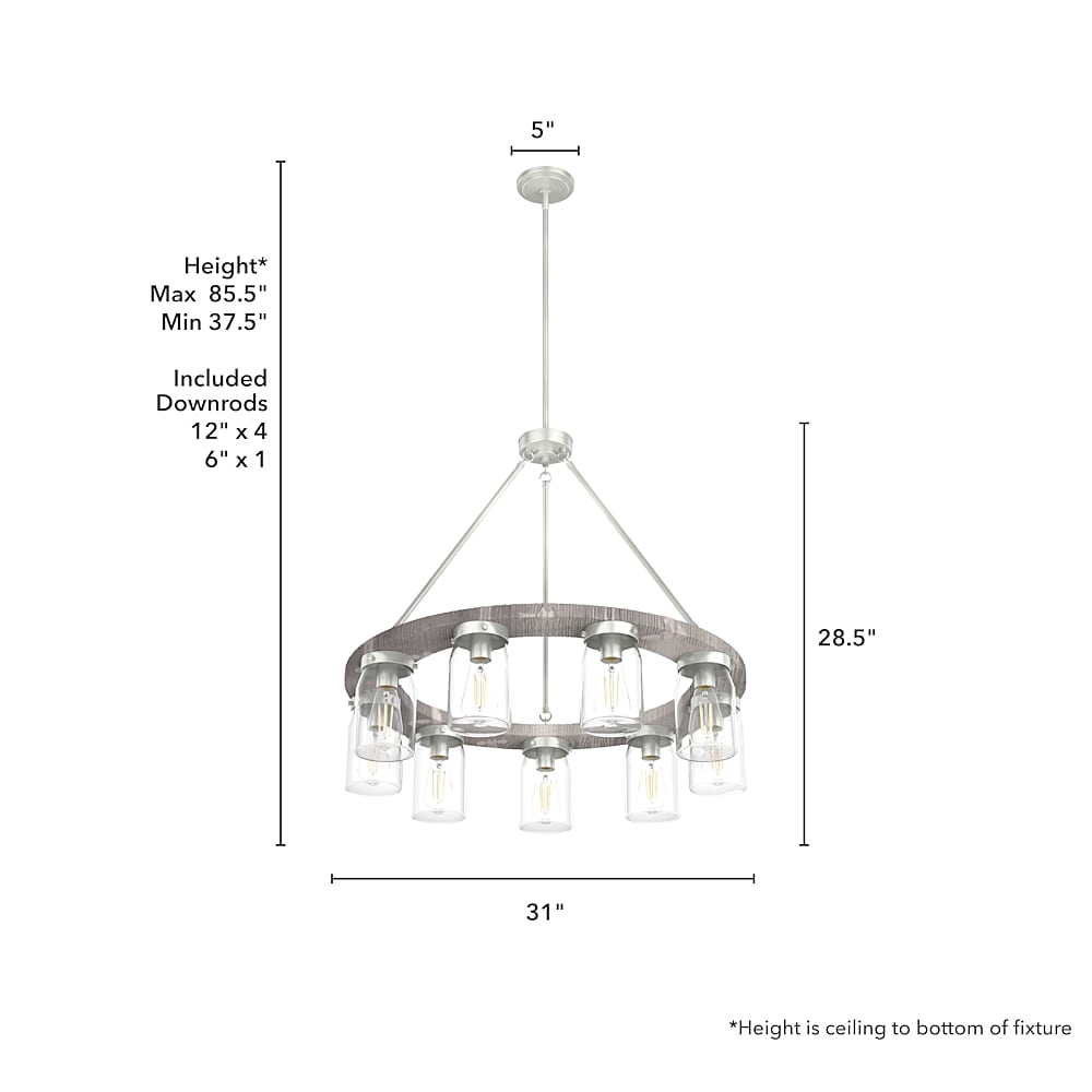 - Requires 9 E26 bulbs. Bulbs not included.