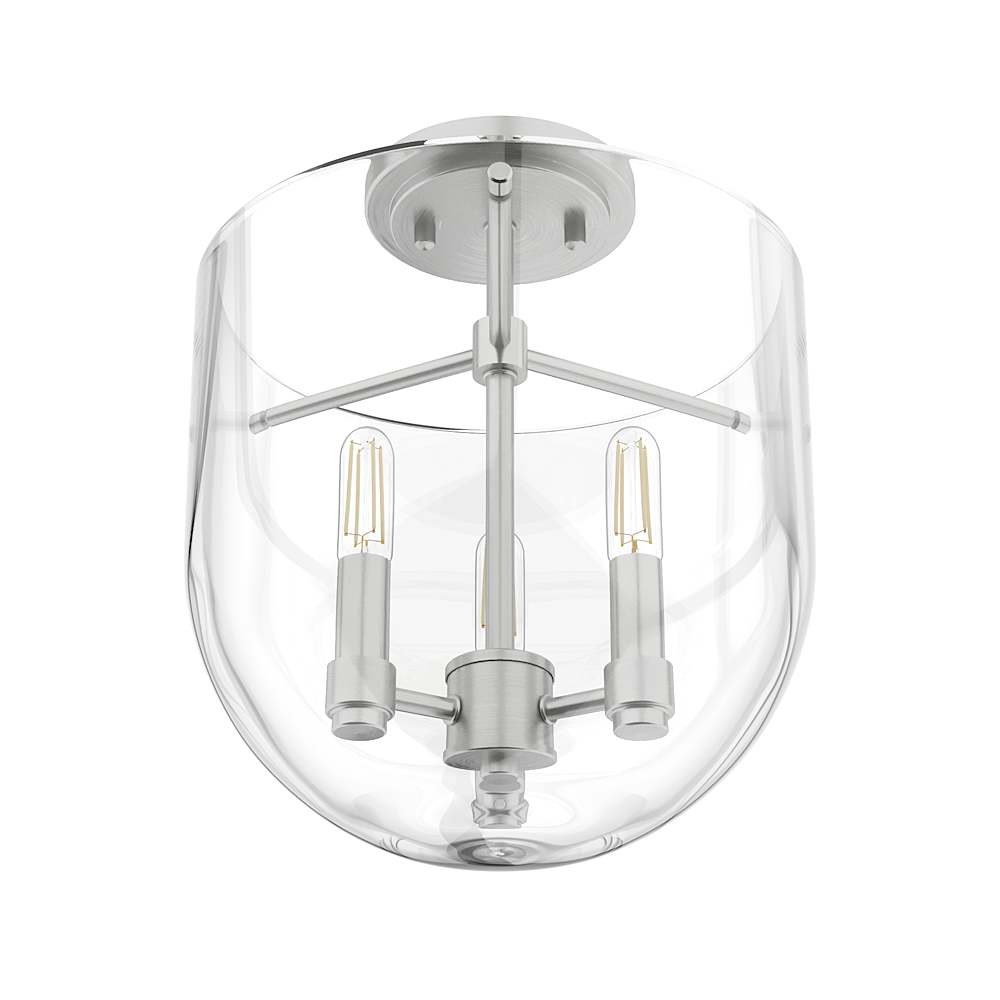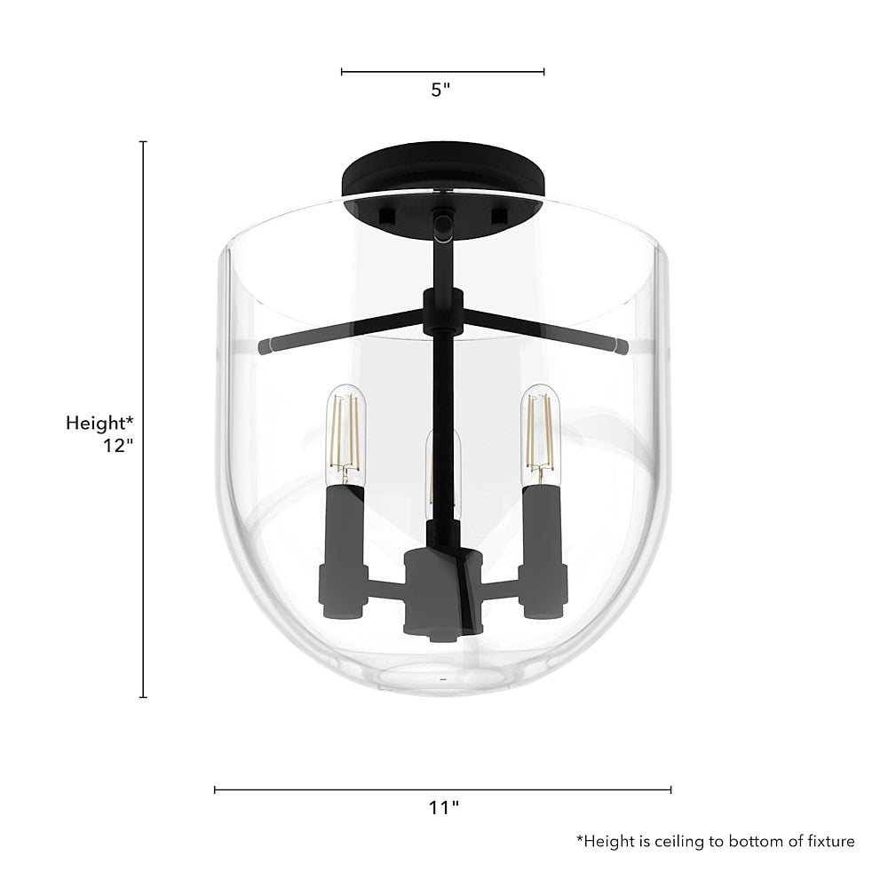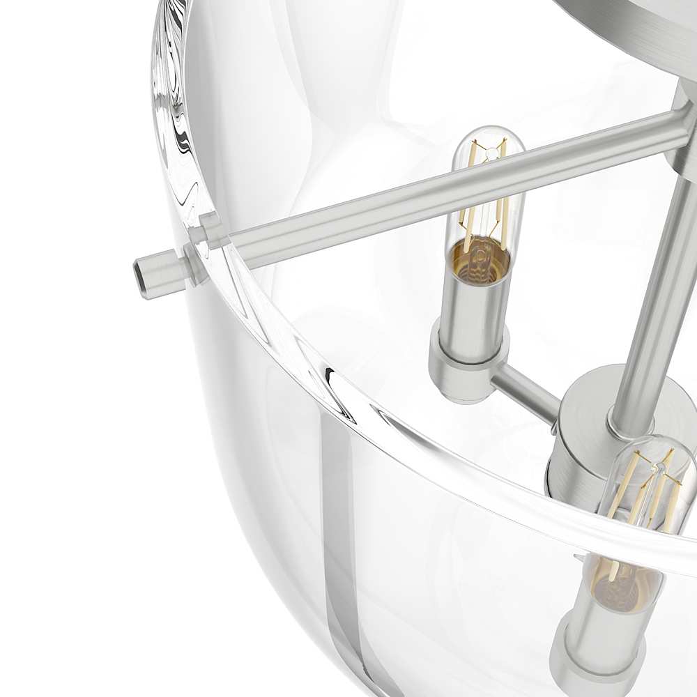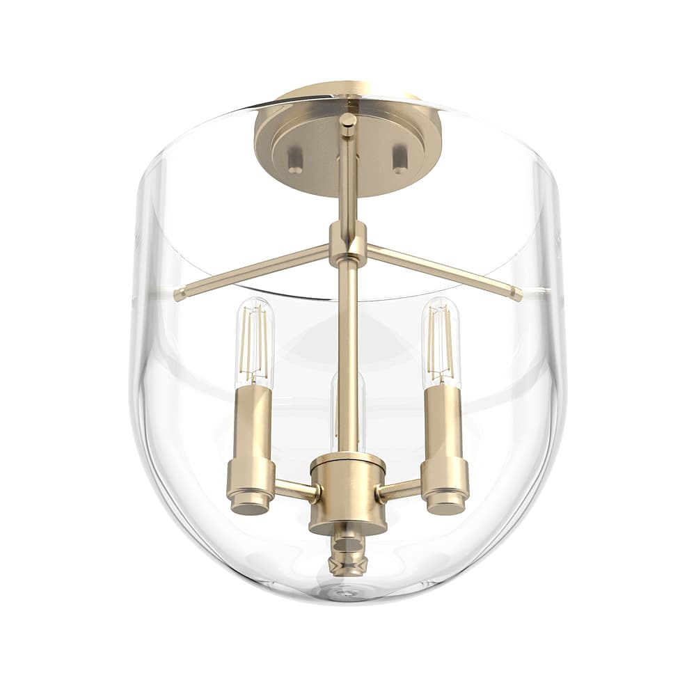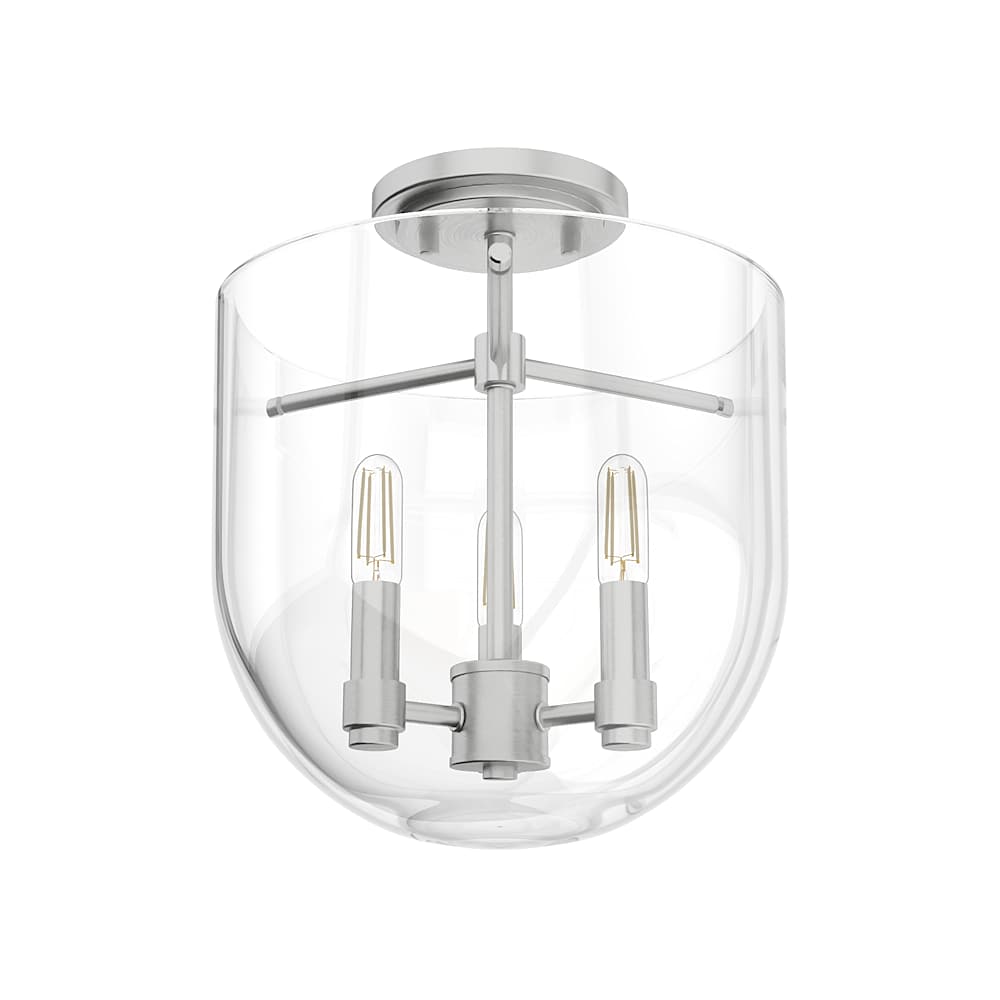 Designed with cathedral-like elegance. The bold Sacha 3-light semi-flush mount light adds modern flair to a traditional style. With its clear glass and clean lines, this bell-shaped pendant is the sophisticated addition your space needs. This fixture makes a dramatic statement in low clearance spaces. It's part of a larger collection, so pair this flush mount light with other beautiful Sacha fixtures.
