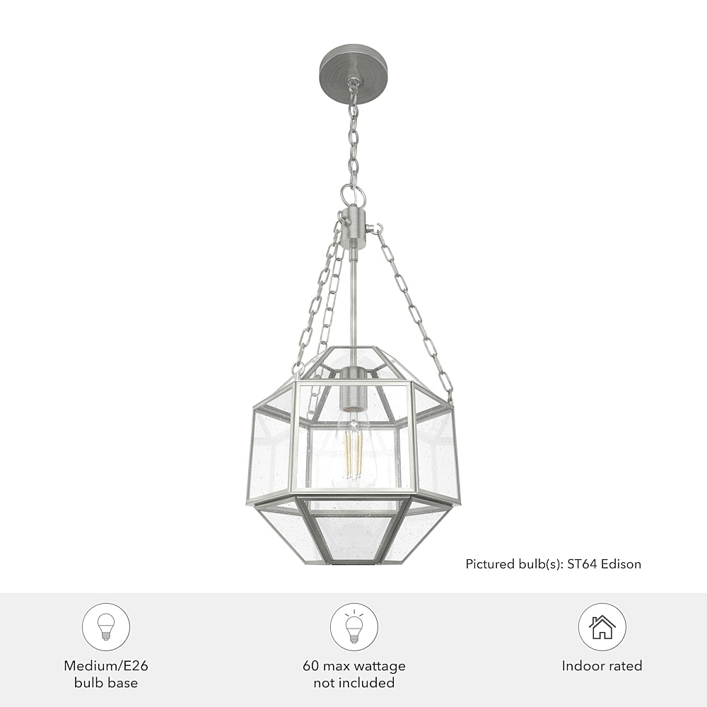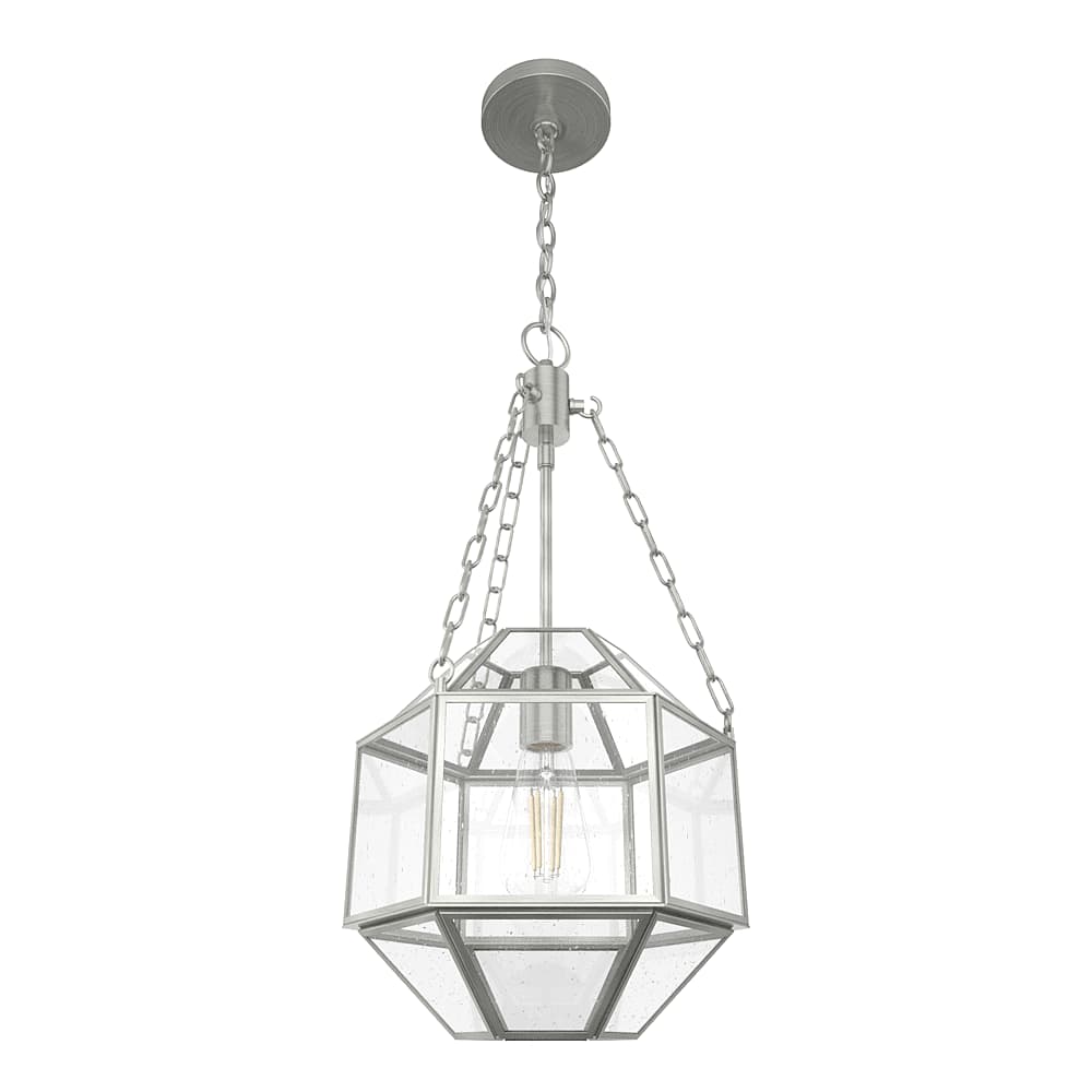 A small pendant with big 'wow' factor. Crisp finishes and seeded glass come together to make an impact with the Indria glass pendant light. This multi-faceted fixture brings unique lighting to all the spaces you love. The Indria's distinctive design pops in traditional and modern spaces alike. Layer this look with other pendants from the Indria Collection.