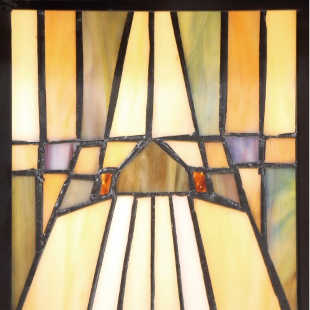 A classic geometric Arts & Crafts piece with handcrafted art glass in shades of sapphire blue, warm honey, amber and cream. Arts and Crafts is an enduring style that honors the tradition of fine craftsmanship and attention to detail.