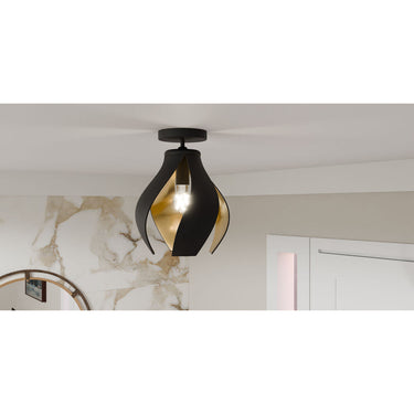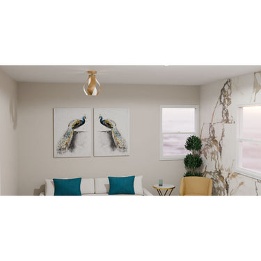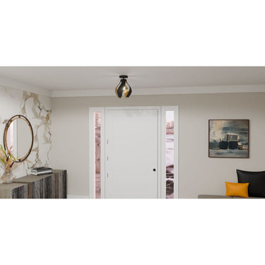 Kiko features a bold, geometric design that makes a modern statement in any room. The open silhouette features a two-tone design: choose from brushed weathered brass with white inside or matte black with gold inside. Whichever color palette you choose, Kiko is available as a semi-flush mount or pendant light and is sure to impress in a variety of interior spaces.