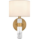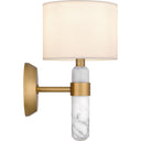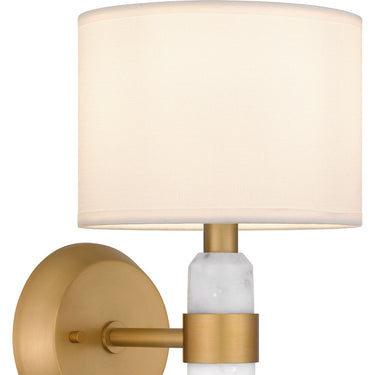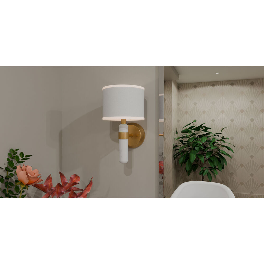 Part of the Quoizel Naturals collection, Kimberly elevates traditional design style with the use of natural elements. The brushed weathered brass finish is adorned with egg shell fabric shades and real white marble accents, adding a unique twist to the classic silhouette. Choose the five-light chandelier, perfect over a kitchen table or in a breakfast nook - or add easy style to any hallway or bathroom with the Kimberly wall sconce.