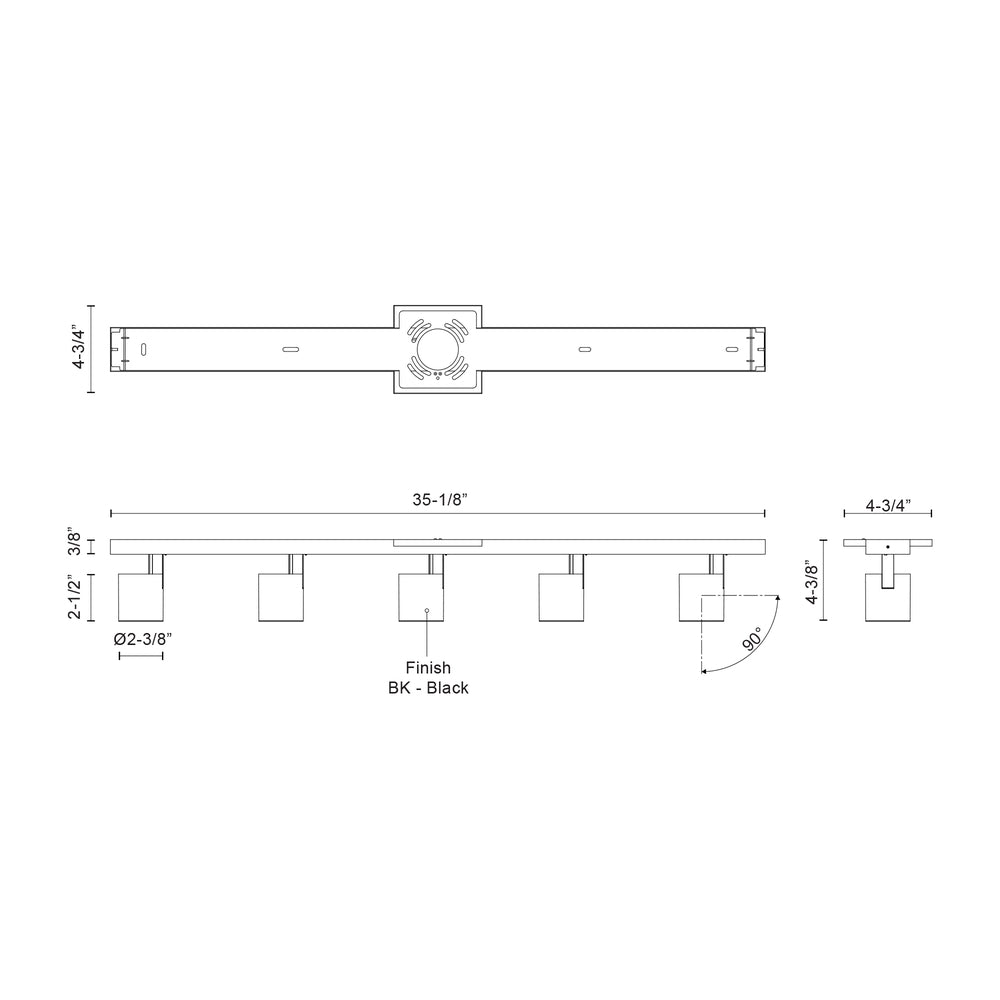 Specification- Fixture Dimensions: L35-1/8" x W4-3/4" x H4-3/8"