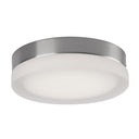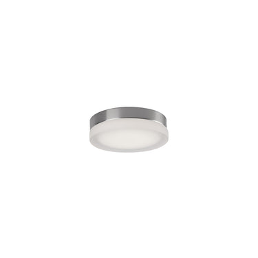 Single LED round flush mount ceiling fixture with three finishes. Round glass frosted or clear surface and painted white interior with chrome or brushed nickel. Equipped with our powerful 120V AC LED technology.