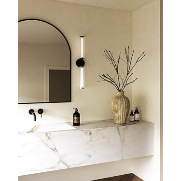 Elevate your bathroom oasis with our cutting-edge integrated LED Braga vanity fixture, a true marriage of form and function. Its distinctive dual cylinder design showcases a frosted diffuser inside, casting a soft, welcoming glow, while the outer shade boasts clear acrylic, adding a touch of sophistication to your space. This versatile piece can be mounted either horizontally or vertically, allowing you to customize it to suit your space.
