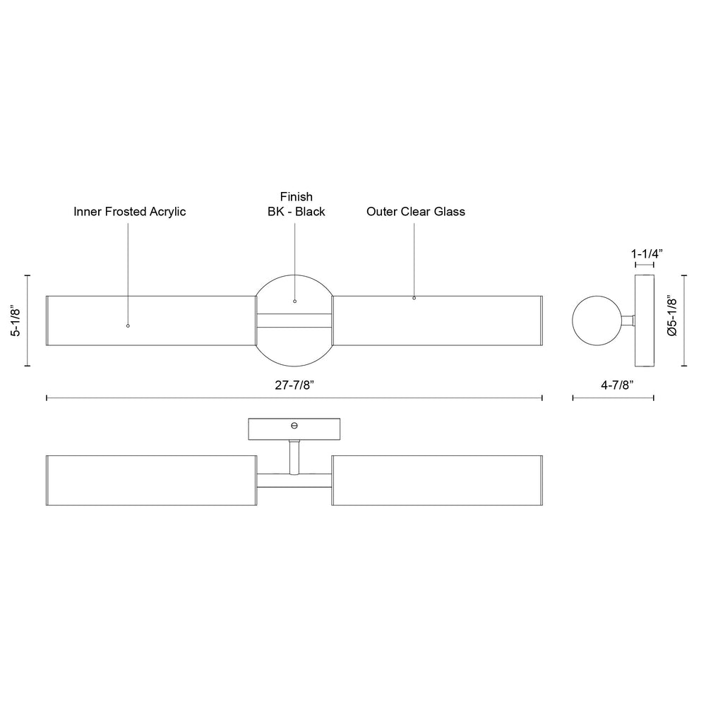 Specification- Fixture Dimensions: W27-7/8" x H5-1/8" x E4-7/8"