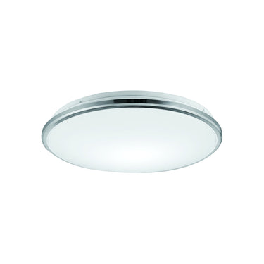 Circular steel base with polymeric body, frosted acrylic lens. Available in chrome, black or white finish.