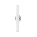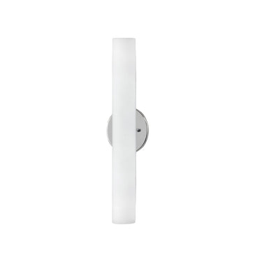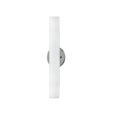 LED wall sconce with cylinder shaped white opal glass. Metal details in brushed nickel or chrome finish and is equipped with our powerful 120V AC LED technology. Available in for two different styles and sizes, view series for more details.
