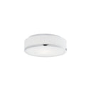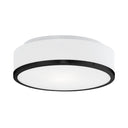 A classic and minimal design this flush mount fixture is comprised of a cylinder glass shade which diffuses the LED light downward while spreading illuminance outward. The light is accented by a plated metal ring which wraps the perimeter edge. The spare details pair well with the simple form.