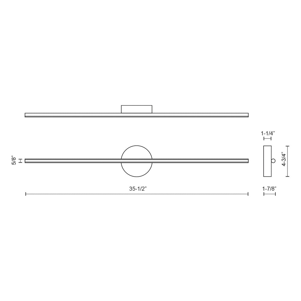 Specification- Fixture Dimensions: W35-1/2" x H4-3/4" x E1-7/8"