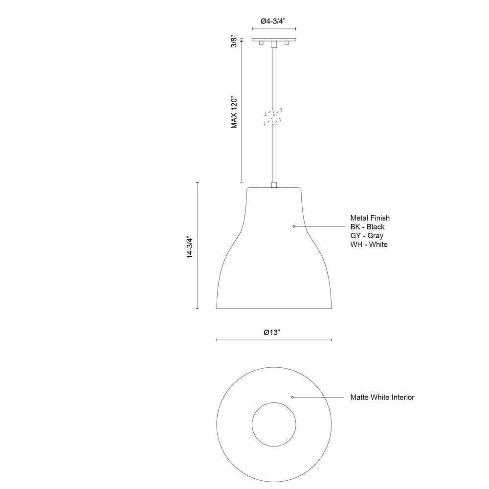 Specification- Fixture Dimensions: D13" x H14-3/4"