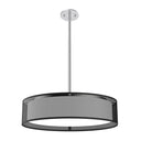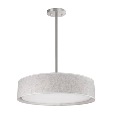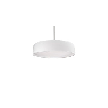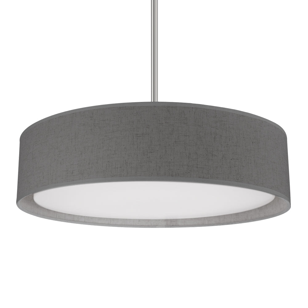 An organza or textured linen band surrounds a concentric polymeric diffuser spreading even light from the LED source. Finely hand-tailored, the fabric shade contributes a soft sophistication to the modern interior. Applicable as a flush mount, pendant and in numerous sizes and fabric colors to suit your context.