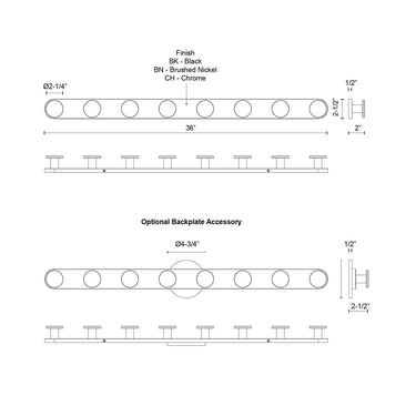 Specification- Fixture Dimensions: W36" x H2-1/2" x E2"