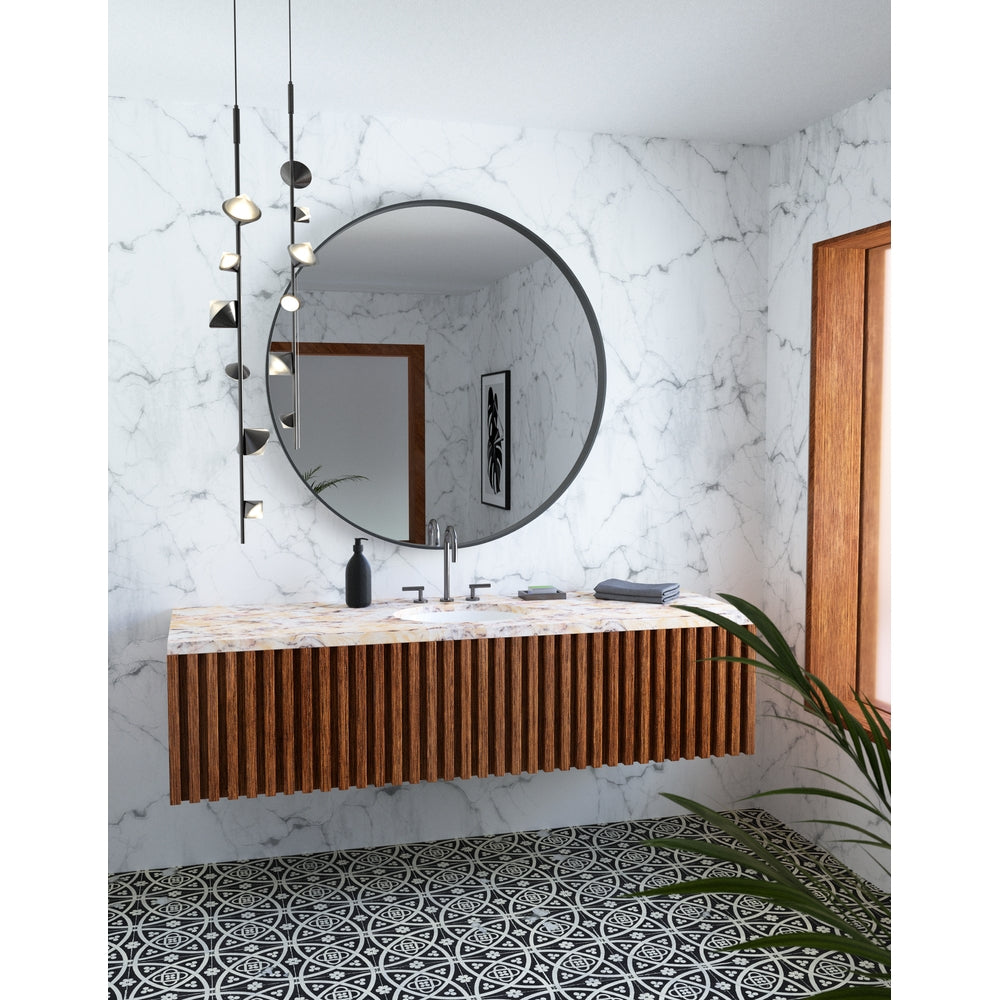Gemstone shaped illuminations cluster around an architectural rod in a way that is enduring and awe-inspiring. Providing luxe and modern ambient lighting in any space, the Geode Collection is the jewellery of any space.