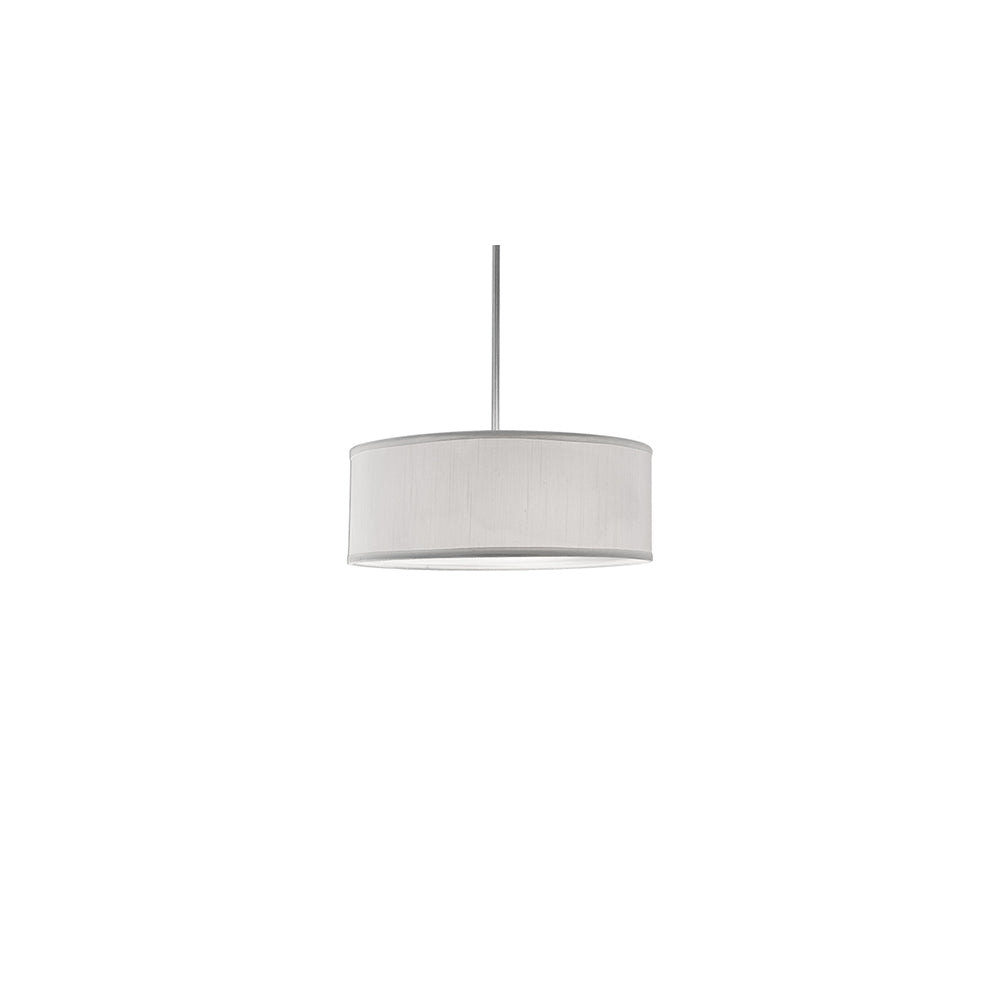 Three lamp pendant with a round drum shape textured linen shade in your choice of two colors, acrylic bottom diffuser.