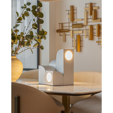 Introducing Gypsum - a mesmerizing table lamp from the mind of Sean Brown, part of his exclusive Curves home collection. Crafted with sleek archways and rounded acrylic diffusers, its UFO-like design captivates any space with a blend of modernity and elegance. Available in polished brass or pristine white finishes, Gypsum promises to illuminate your home with unparalleLED style.