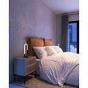 Steel base with die-cast aluminum body, acrylic frosted tube, matte powder-coated or plated finish