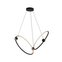 The Isho collection evokes a feeling of futuristic modern elegance. With rings of illumination colliding organically, this series is inspired by orbital patterns seen in our galaxy and beyond. Each ring is affixed by a small, illuminated orb, adding to the organic and other worldly beauty of this collection. Available in a two or three ring chandelier, the Isho is sure to be the center of any space's gravity.