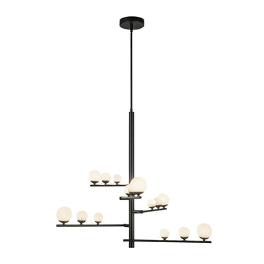 Juniper's shape expands and contracts to suit your space's needs. Each "branch" of the Juniper collection adjusts to lengthen or collapse, creating a customized look. Atop each arm sits three growing Matte Opal glass globes stretching outwards to create depth and emphasis.