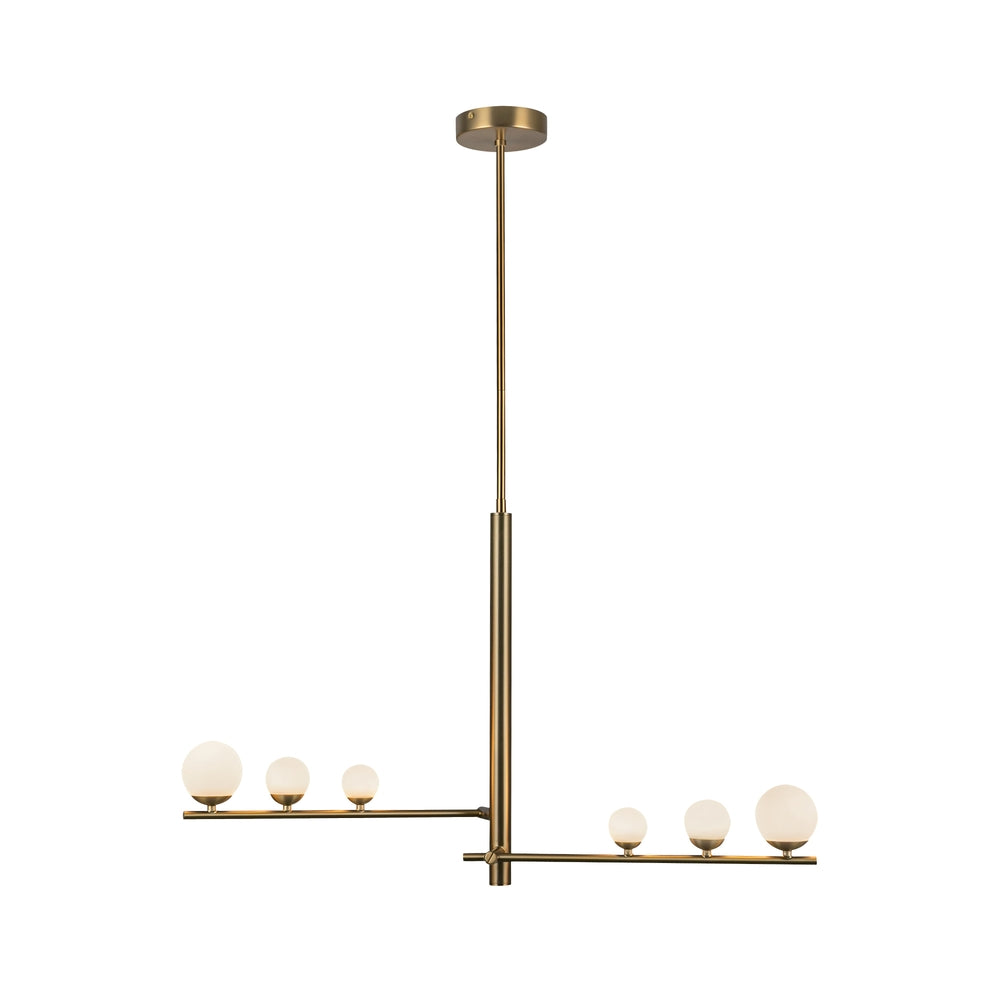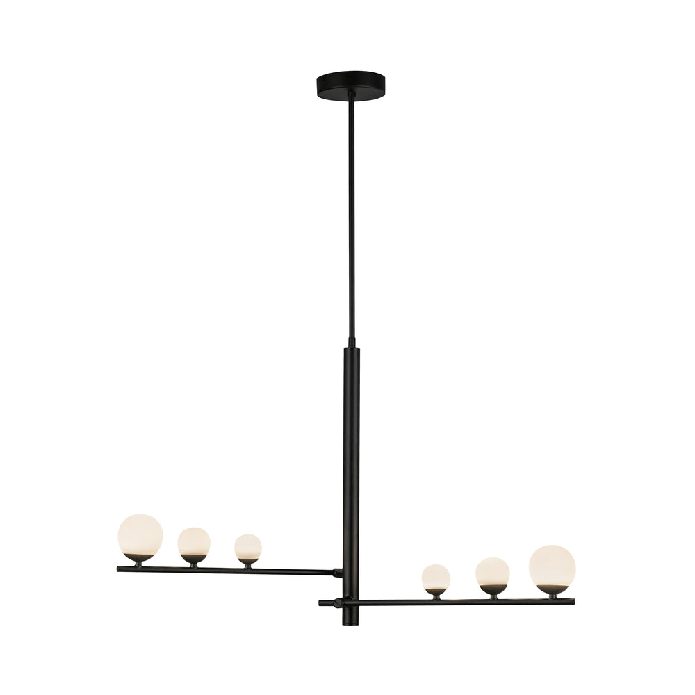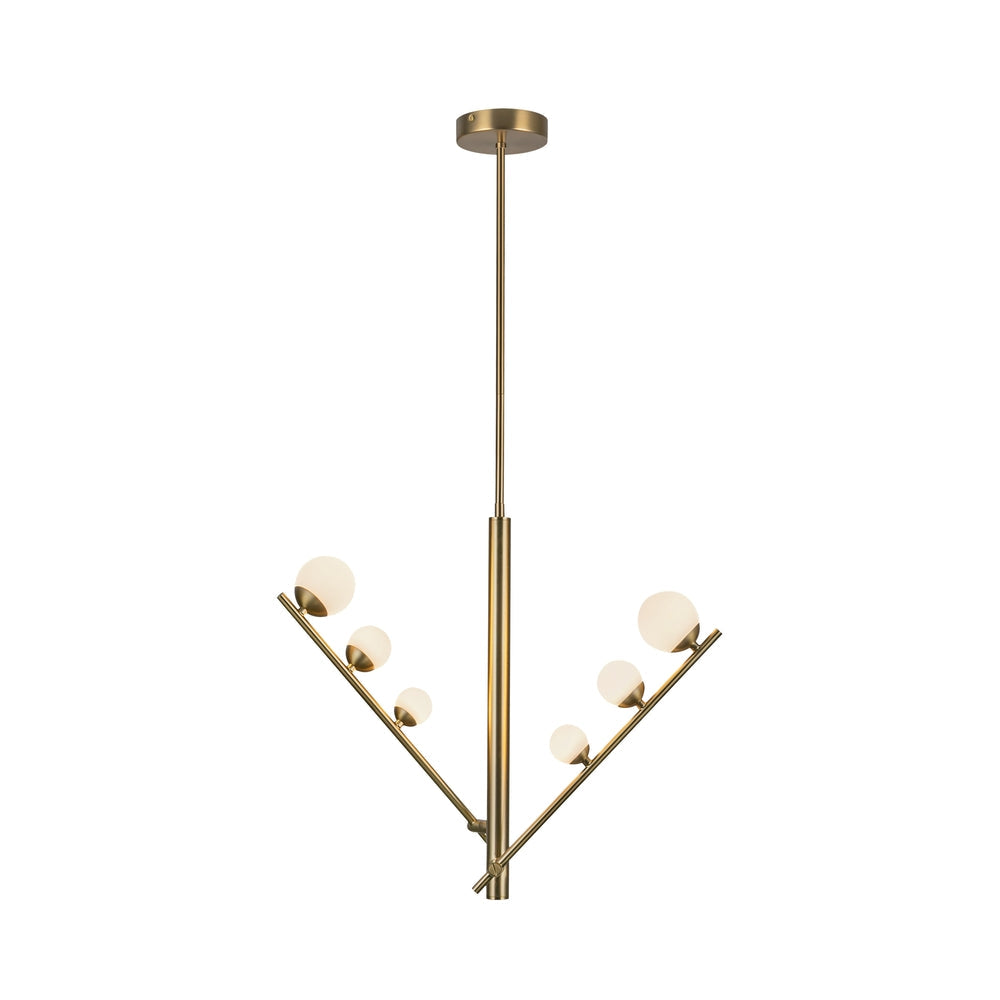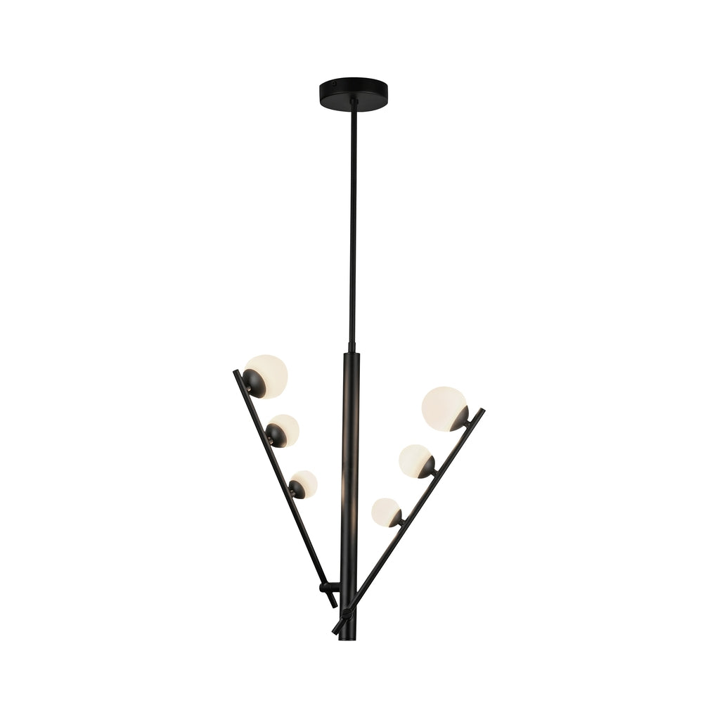 Juniper's shape expands and contracts to suit your space's needs. Each "branch" of the Juniper collection adjusts to lengthen or collapse, creating a customized look. Atop each arm sits three growing Matte Opal glass globes stretching outwards to create depth and emphasis.