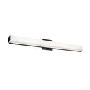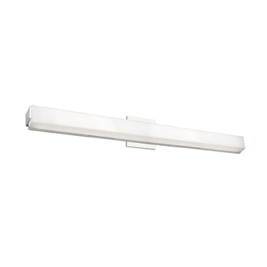 An extruded rectangular diffuser surrounds the LED source of the geometric vanity fixture. Capped by two thick offset squares the design is characterized by minimal details and clever features. During installation the lamp assembly may slide on the mounting track to allow for ideal positioning. Adding to the versatile function are the multiple fixture lengths and mounting orientations. Optional installation without backplate for smaller junction boxes.