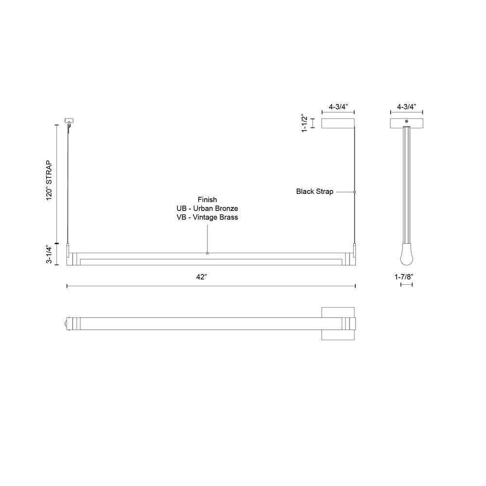Specification- Fixture Dimensions: L42" x W1-7/8" x H3-1/4"